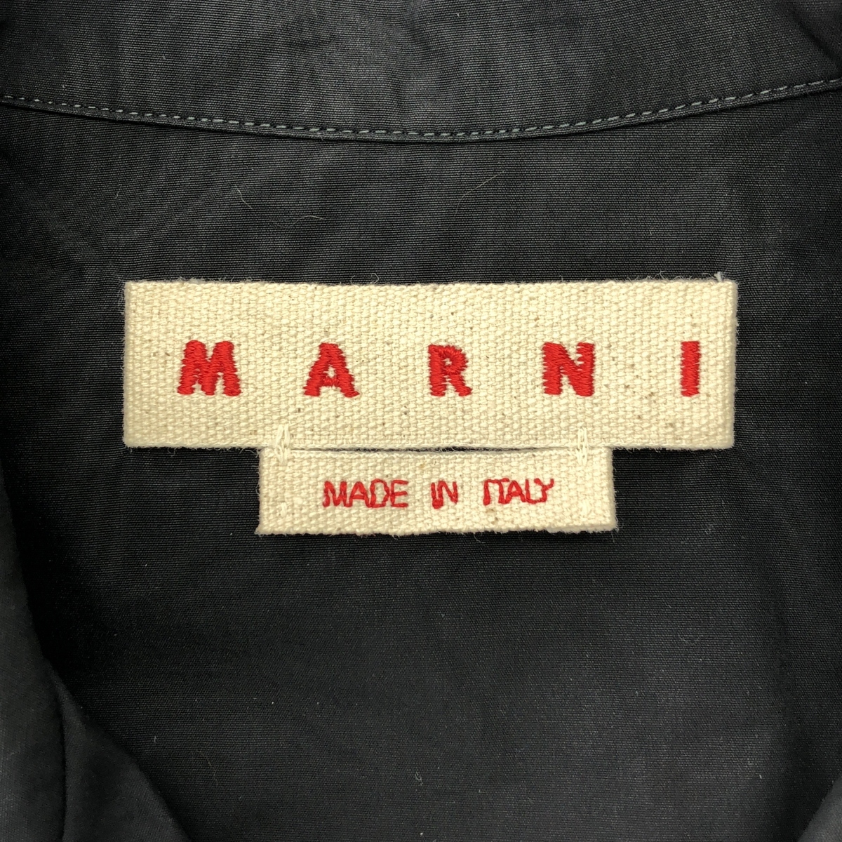 【美品】 MARNI / マルニ | Organic Poplin Shirt / ステッチワーク ロゴ オープンカラーシャツ | 46 | ブラック | メンズ