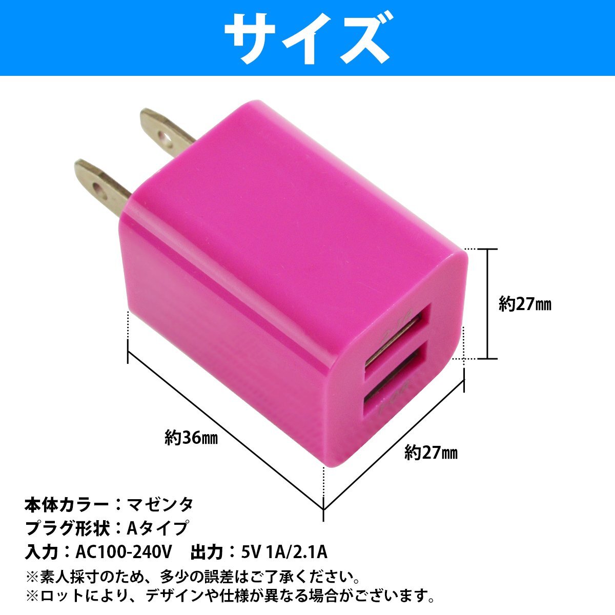 スマートフォン 充電器 ACアダプター USBポート 2口 2.1A 紫1 iphone スマホ 充電 USB2ポート コンセント コネクター