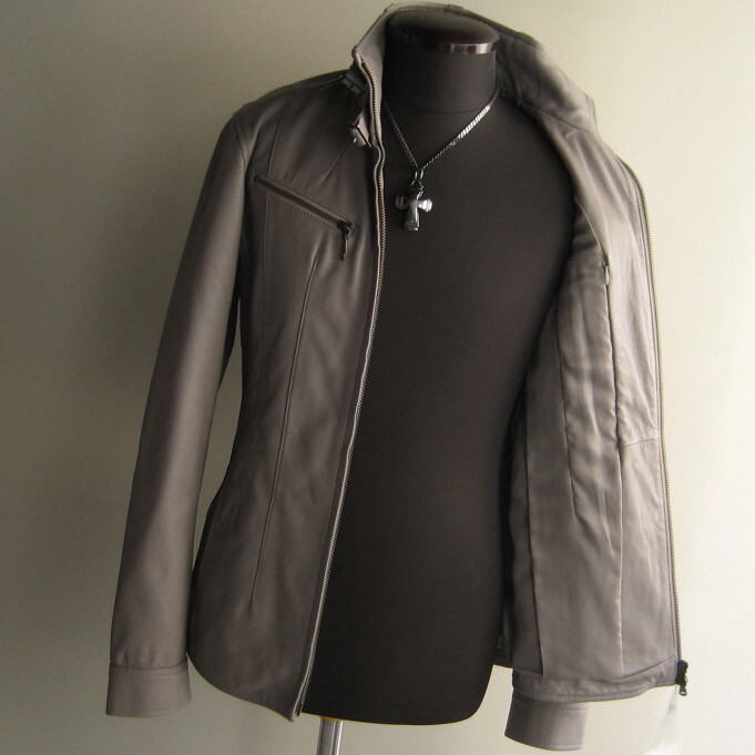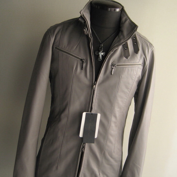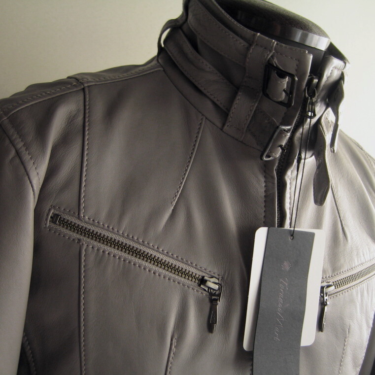 新品 5.4万 M トルネードマート スタンドレザーライダースジャケット グレー 400