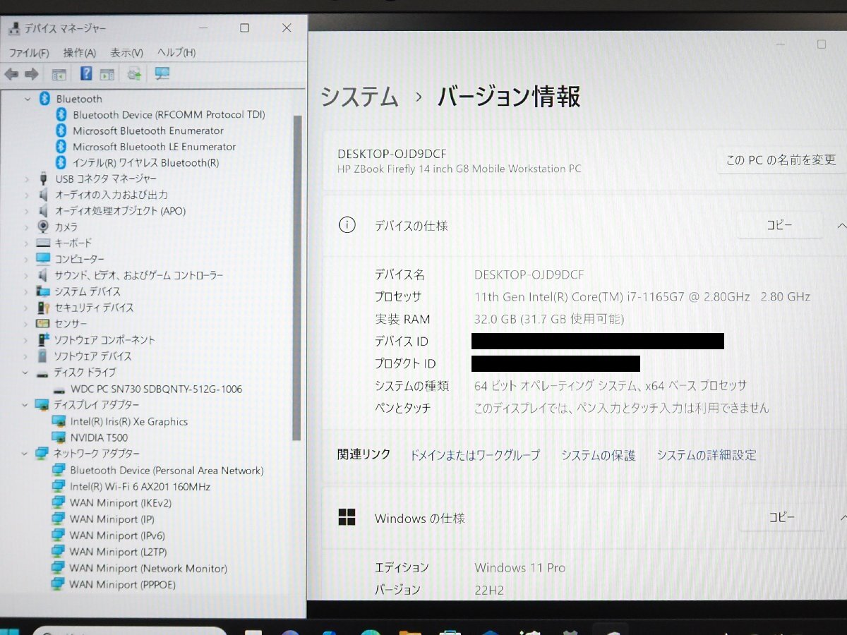 メーカー:hp 型番 :Zbook Firefly 14 G8 CPU :11th Gen Intel Core i7-1165G7 2.80GHz ※OS上で8CPUにて認識いたします。 RAM :32GB SSD (M.2) :512GB ×1 (WDC PC SN730) モニタサイズ :14.0ワイド 1920x1080表示 ドライブ類 :なし グラフィック :NVIDIA T500 無線LAN :Intel Wi-Fi 6 AX201 160MHz プロダクトキー:システムボード内臓 ※ Windows Proシールが本体に貼付 付属品:ACアダプタ、マウス 程度 :中古品になります。キズ・スリキズがあります。液晶面にキーボード痕があります。 状態 :Windows11 proをインストールし動作確認(認証済)を致しました。 | |