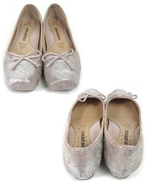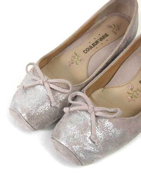 | クロールバリエ グレージュ ラメ フラット シューズ 22.5 |