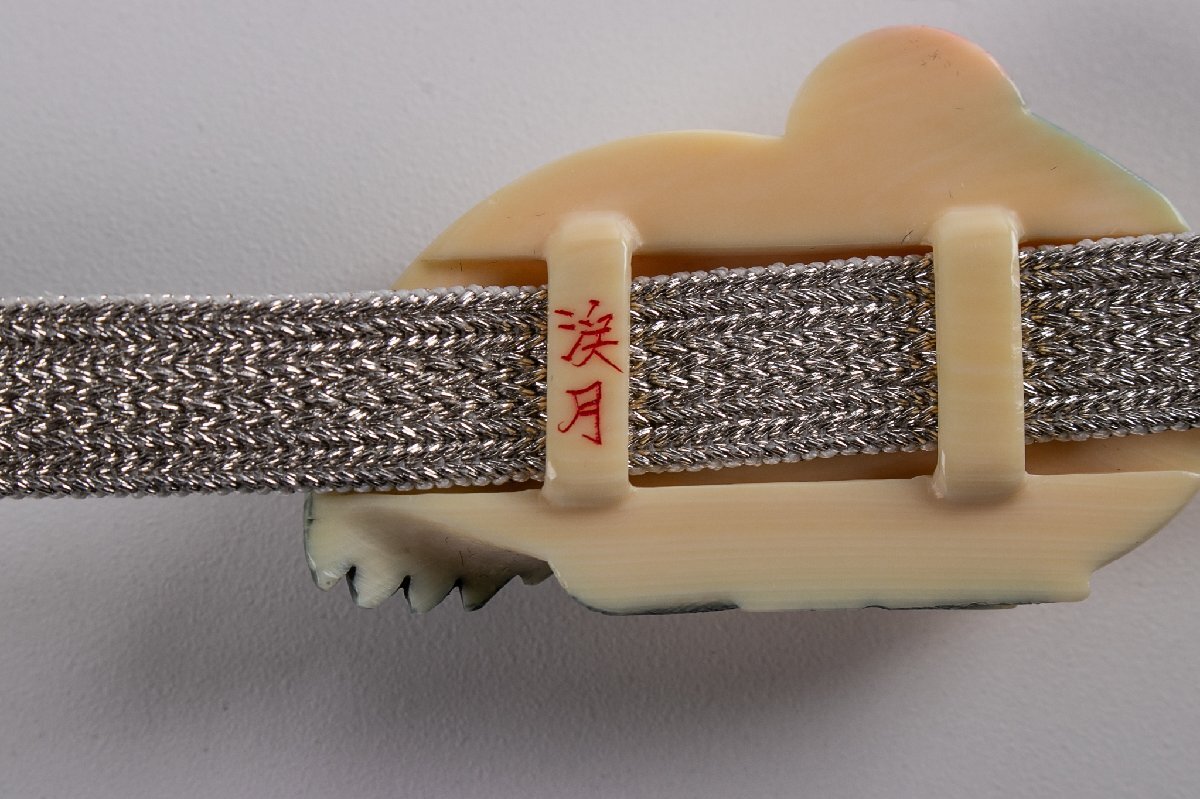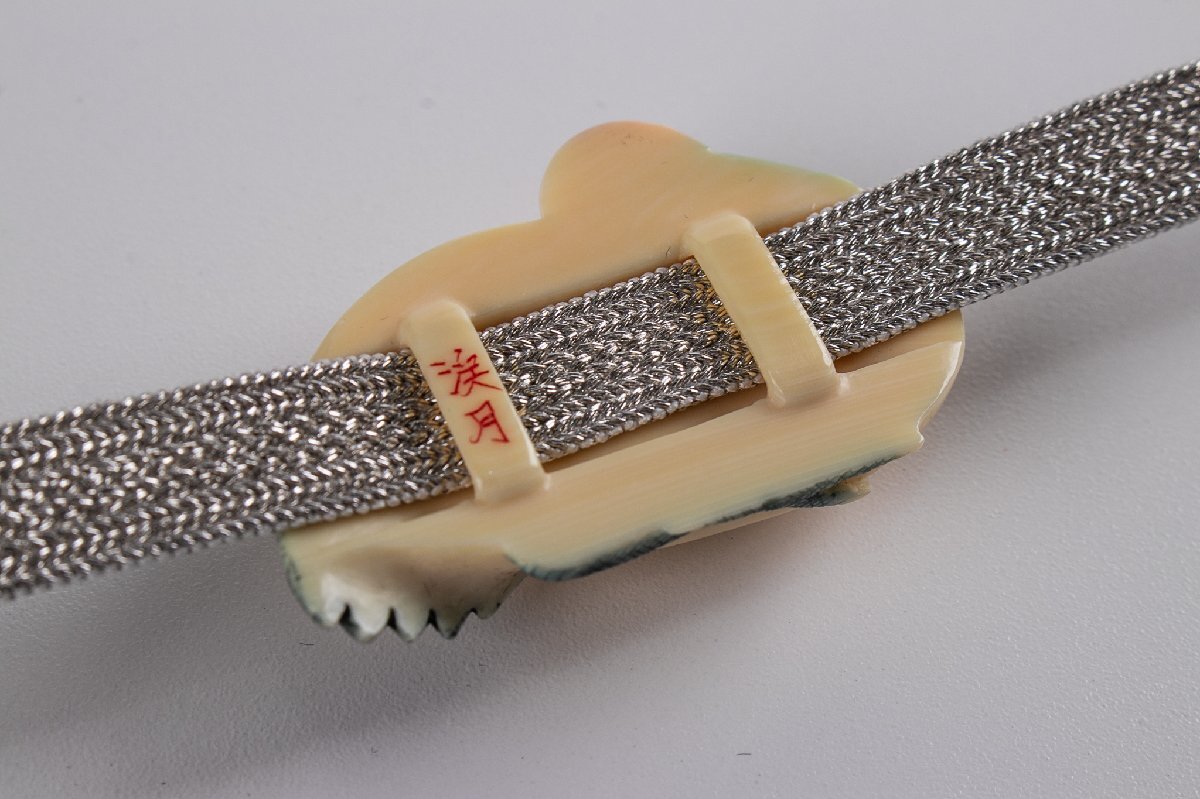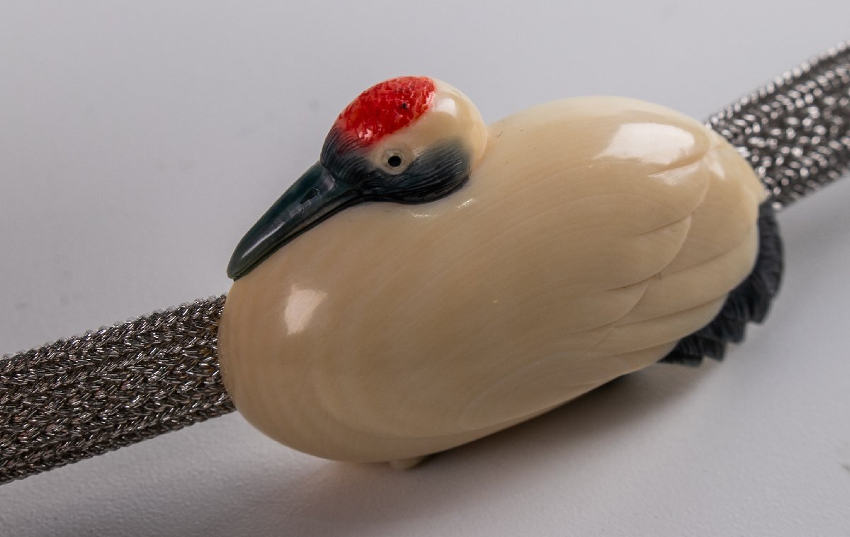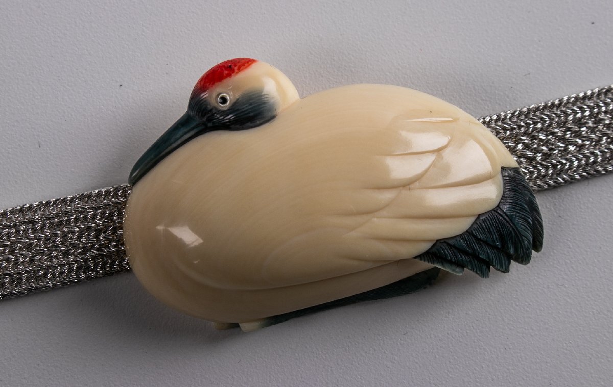 【うつわ】 和装小物 銘 渓月 鶴彫刻彩色 帯留め F127C 古美術 骨董 茶道具 着物