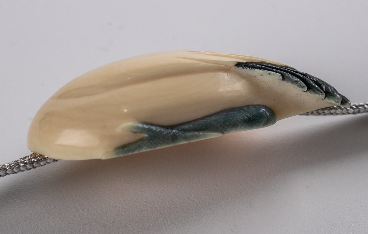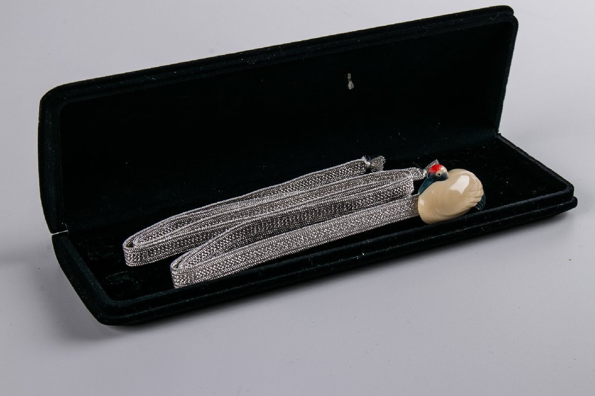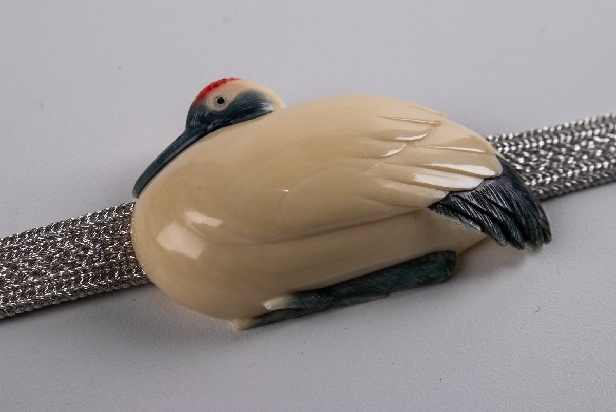 【うつわ】 和装小物 銘 渓月 鶴彫刻彩色 帯留め F127C 古美術 骨董 茶道具 着物