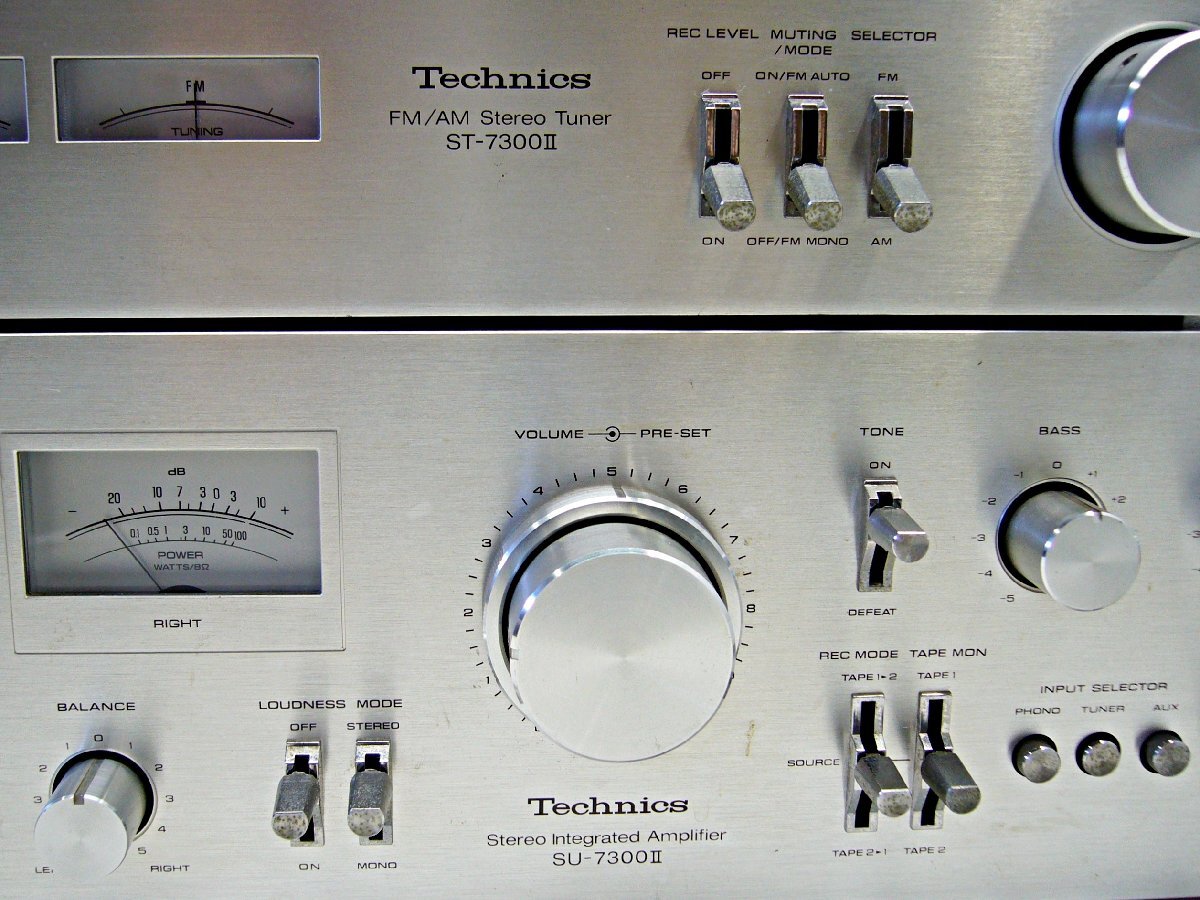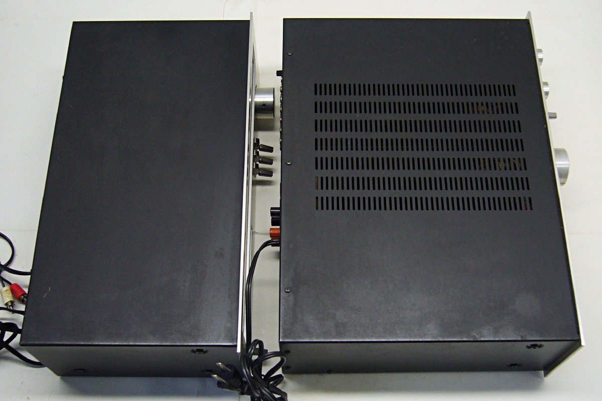Technics SU-7300Ⅱ プリメインアンプ ST-7300Ⅱ チューナー 2点セット ★ ジャンク品 (返品・返金・修理はお受けできません) SU-7300Ⅱ プリメインアンプ : AUX入力とスピーカー端子にテスト用機器を繋ぎ出音を確認しました。 初めは右から出音ありませんでしたが、作業中に左右とも出音しました。 TONEレバーにガリあります。 すべての動作は確認していません。 ST-7300Ⅱ FM/AMチューナー : 通電確認のみになります。 外観は汚れ・キズ・サビ等があります。 付属品はありません。 短時間の簡易的なチェックのみとなりますので、あらかじめご了承ください。 専門外のため、細かい不具合には気づかない場合があります。 画像をよくご確認の上、ご入札をお願いいたします。 |
