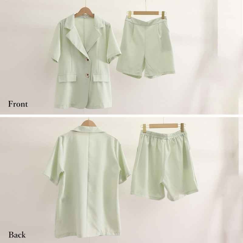 ボディラインを過剰に拾わないストンとしたシルエットのジャケットと、バックゴムのハーフパンツはストレスフリーな着用感を実現するだけでなく、スッキリした見た目にしてくれます。
