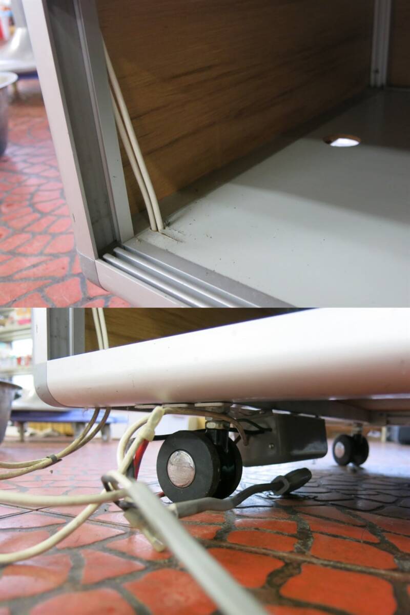 裸の配線が底面側に通っていますのでキャスターで移動する際には、