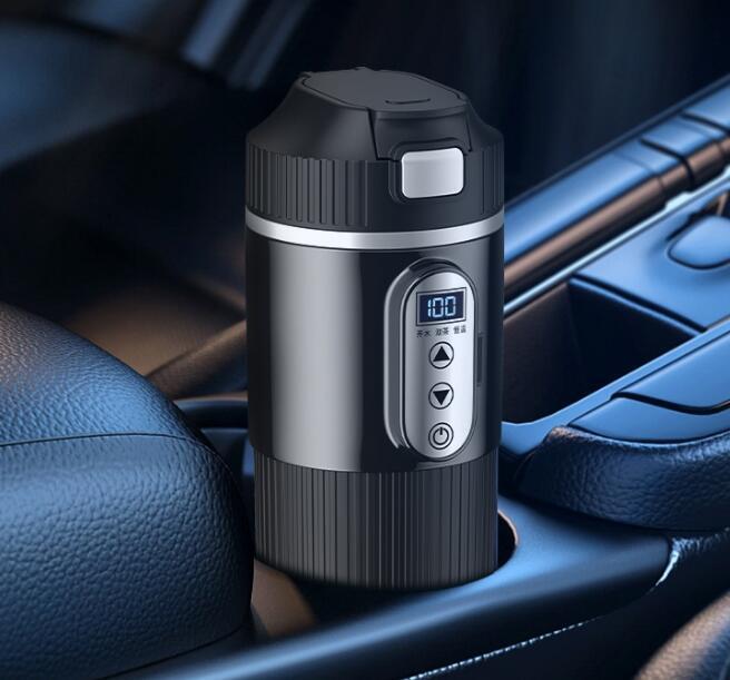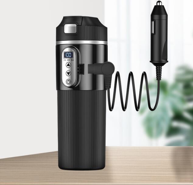 新作車載電気ケトル 500ml DC12V小型車 24Vトラック保温断熱車用湯沸し器電気ポット温度表示304ステンレス鋼 車中泊 カップラー白