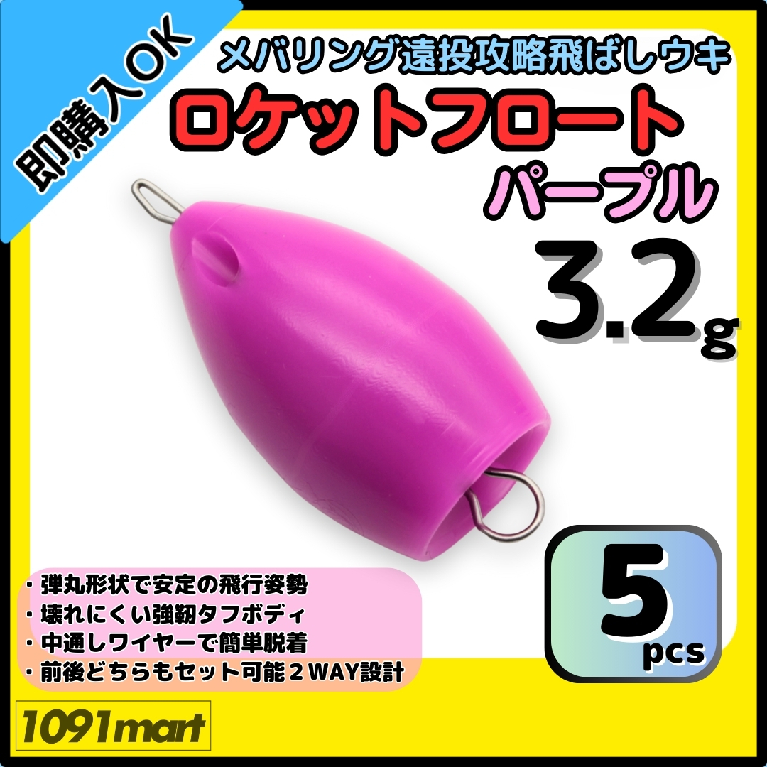 【送料無料】飛ばしウキ ロケットフロート パープル 3.2g 5個セット ワンタッチワイヤー式 メバリング キャスティングフロート