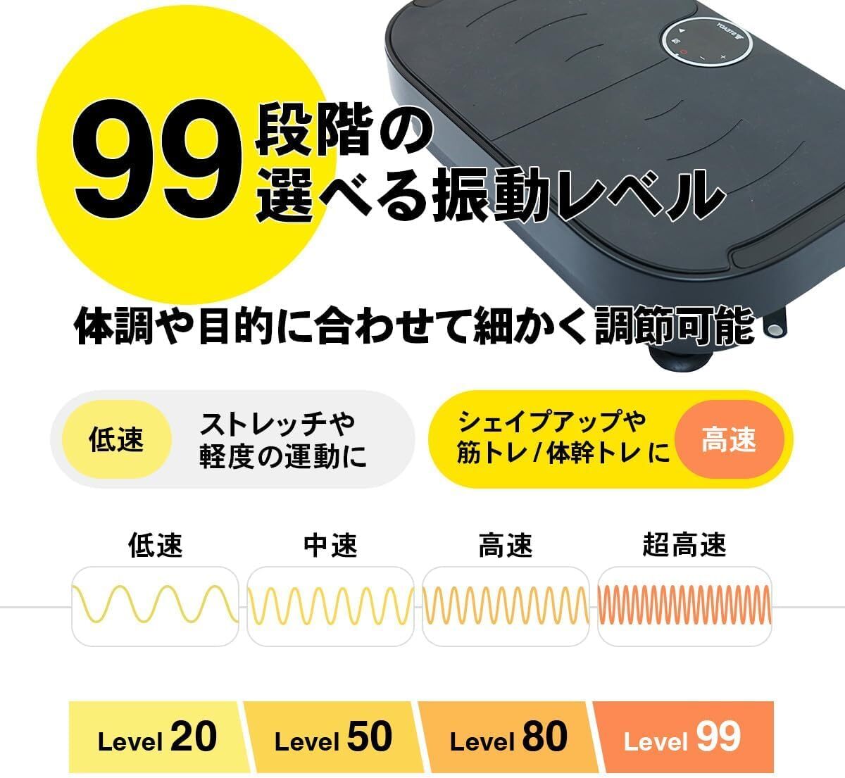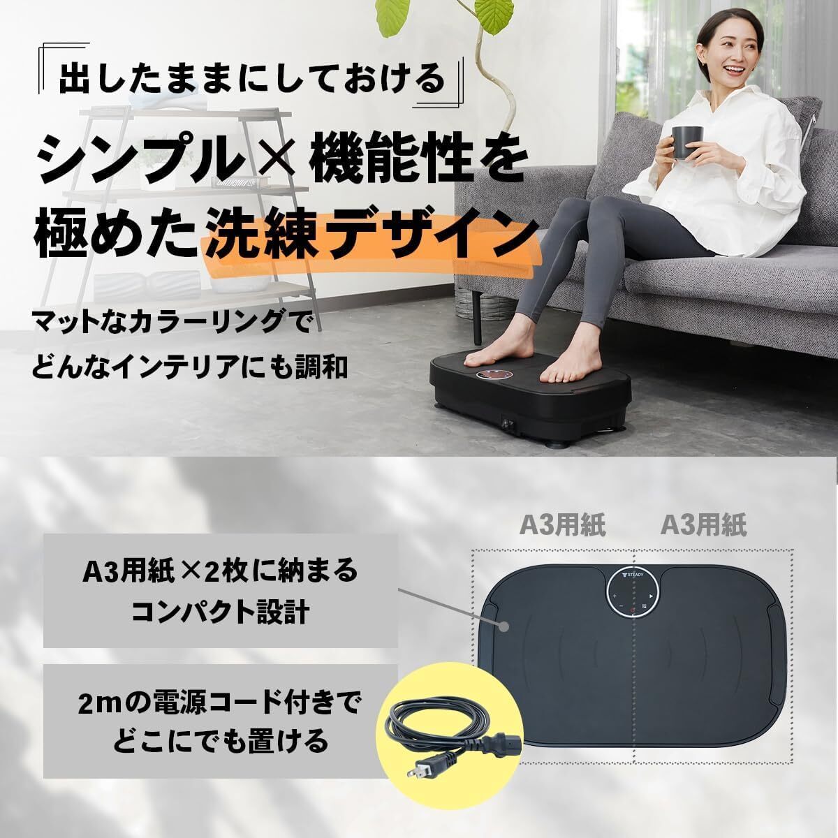 ブラック色 STEADY 振動マシン 【99段階の振動レベル / 静音 / ダイエット器具 】足痩せ お腹痩せ 健康器具 フィットネス