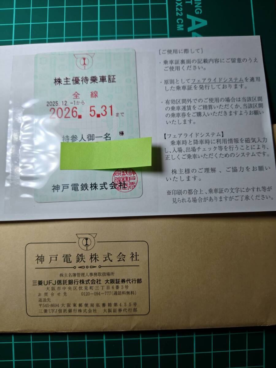 1枚 最新 神戸電鉄 株主優待乗車証 定期券型 送料無料 神鉄 優待 株主優待 株主優待券 全線定期 定期券 神電