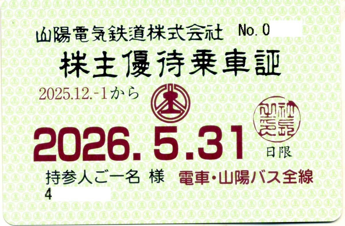 山陽電気鉄道 山陽電鉄 株主優待乗車証 1枚 定期型 電車 山陽バス全線 株主優待券