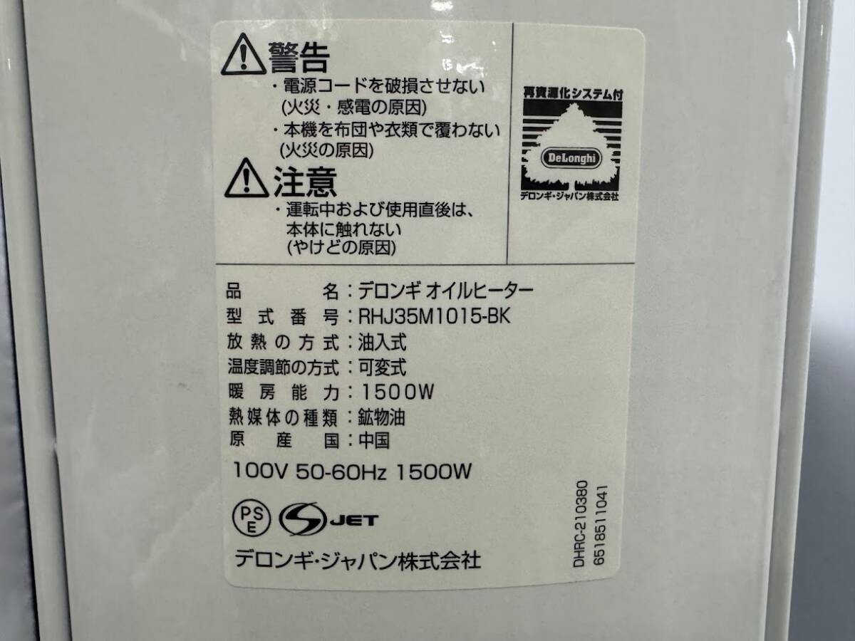 | ■中古品 DeLonghi Amicaldo デロンギ アミカルド オイルヒーター RHJ35M1015-BK 1500W ~13畳 家庭用 暖房器具 | ||