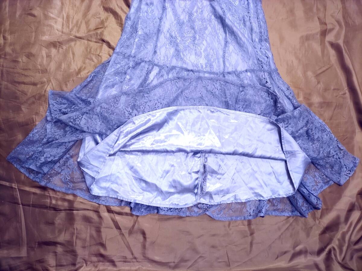 レースロングワンピース サテン裏地 マーメイドスカート パフスリーブ ぴかぴか 愛用 清楚 女子アナ 発表会 お出かけ ピアノ 教師 訳あり