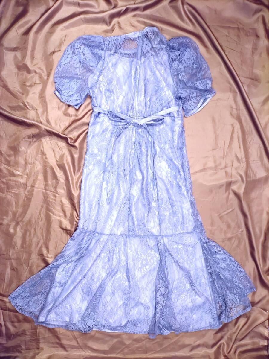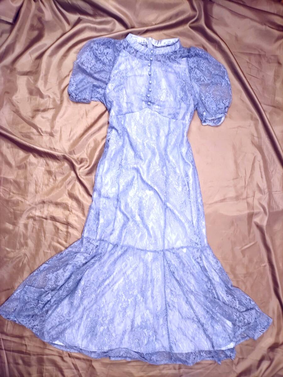 お食事会やお出かけ、パーティーで着用したレースのロングワンピースです。