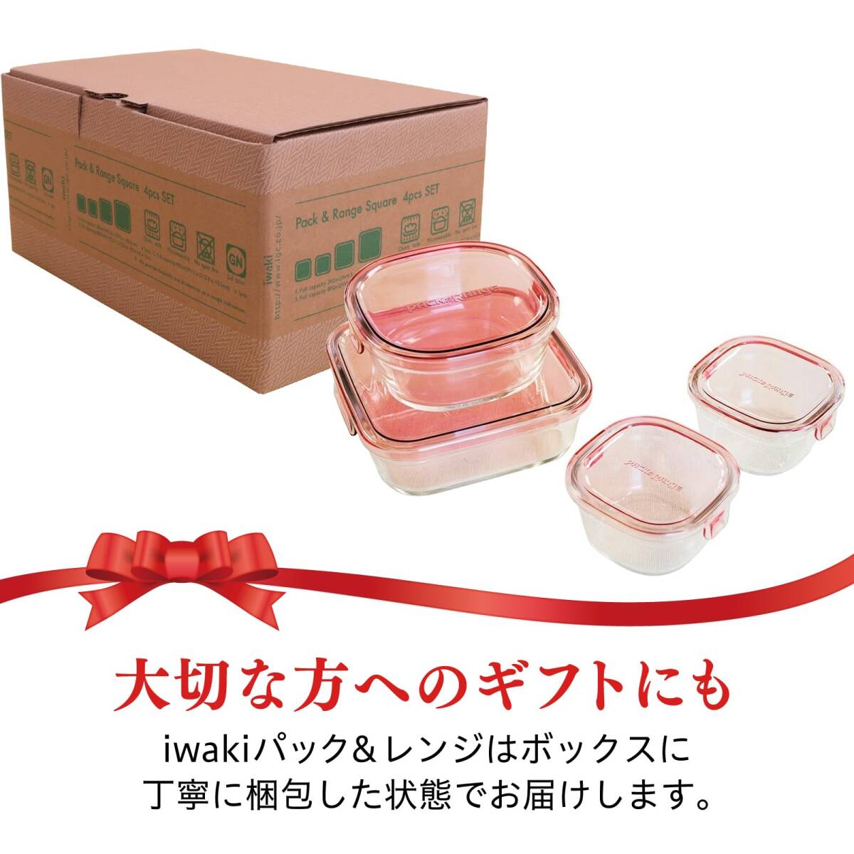 iwaki(イワキ) 耐熱ガラス 保存容器 ピンク 角型 4個セット パック&レンジ PS-PRN-4P1