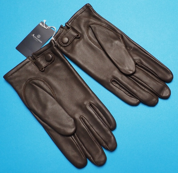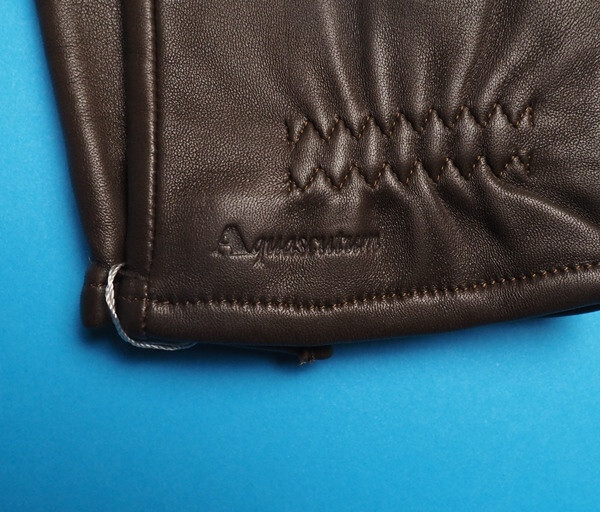 新品正規 Aquascutum アクアスキュータム 羊革オールレザー ステッチ装飾 中厚手 手袋/グローブ 手囲い25cm(L)茶 AQ38026