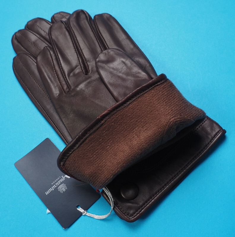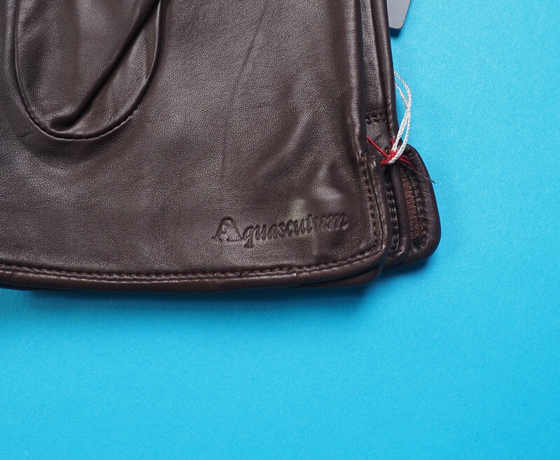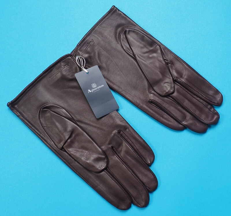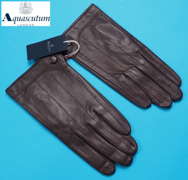 新品正規 Aquascutum アクアスキュータム 羊革レザー ステッチ装飾 手袋/グローブ 手囲い25cm(L)濃茶 AQ38053