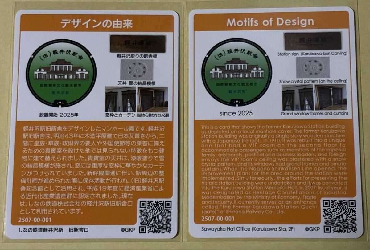 マンホールカード 初期ロット001 第26弾 長野県 軽井沢町A 日本語版・英語版2種セット★軽井沢駅旧駅舎