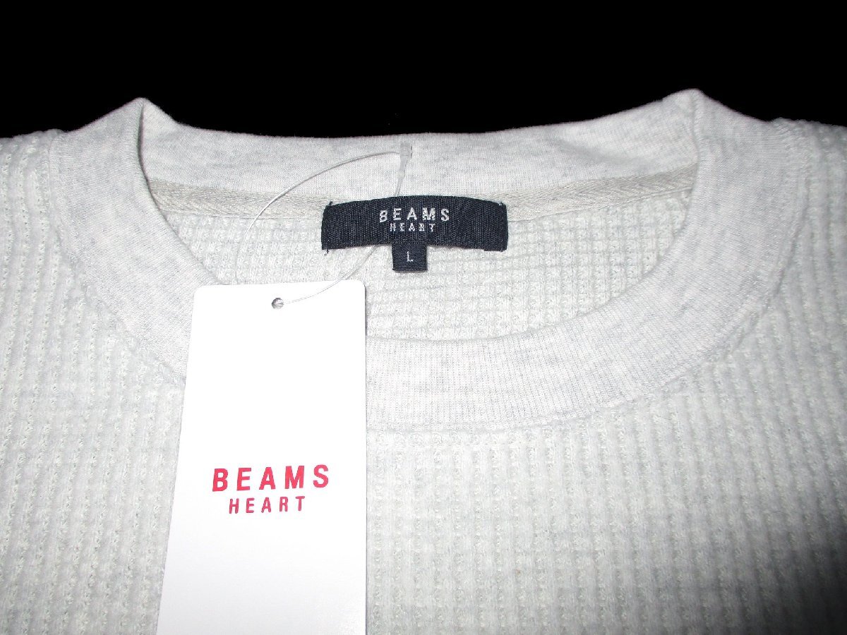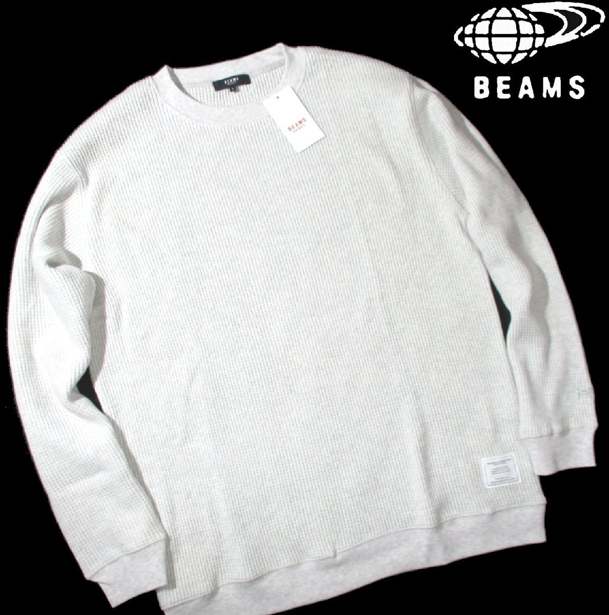 新品 秋冬 起毛 L ▼ ビームス BEAMS HEART 綿100% ワッフル トレーナー 刺繍入り ルーズフィット アイボリー ストーンホワイト 白 メンズ