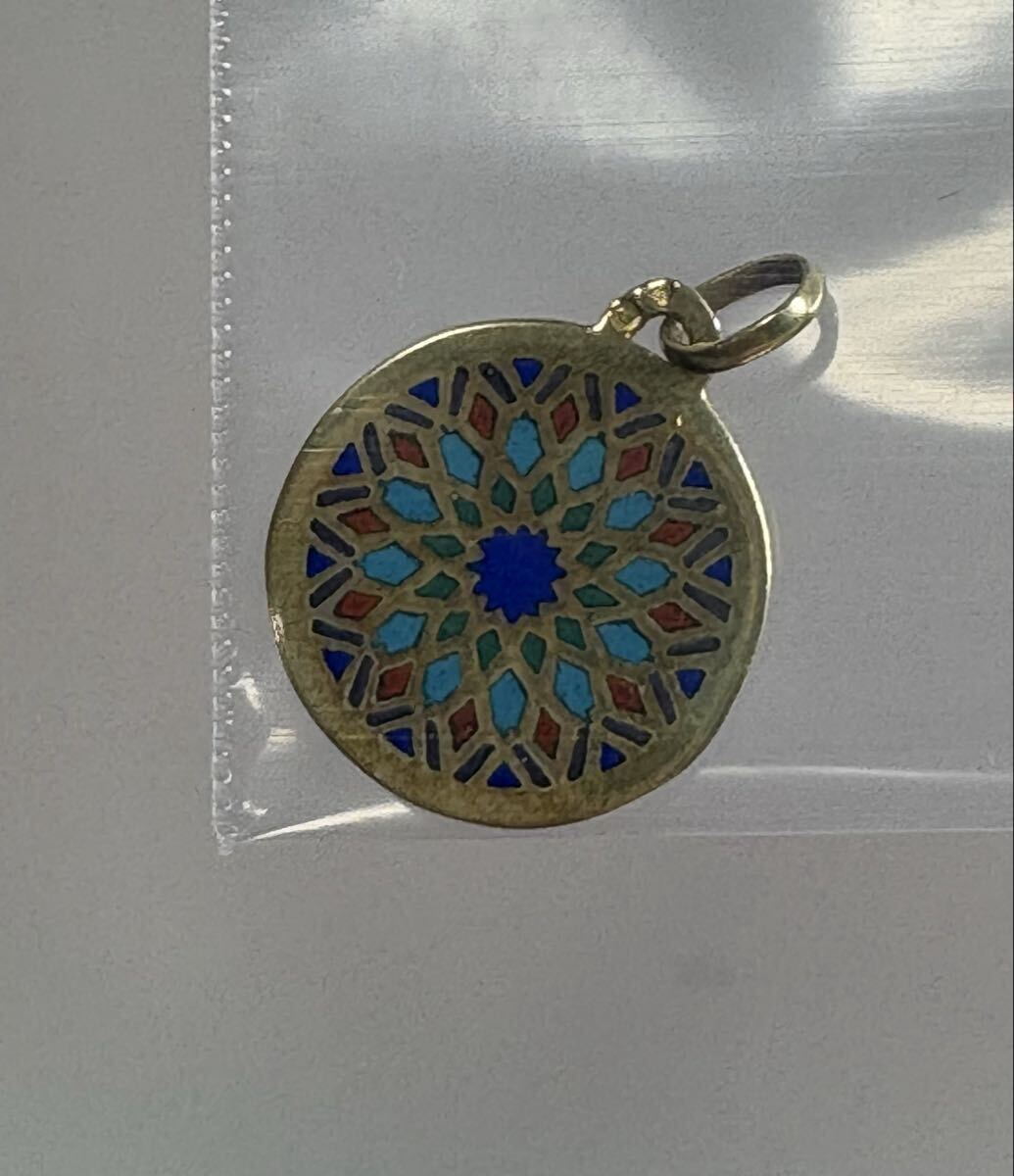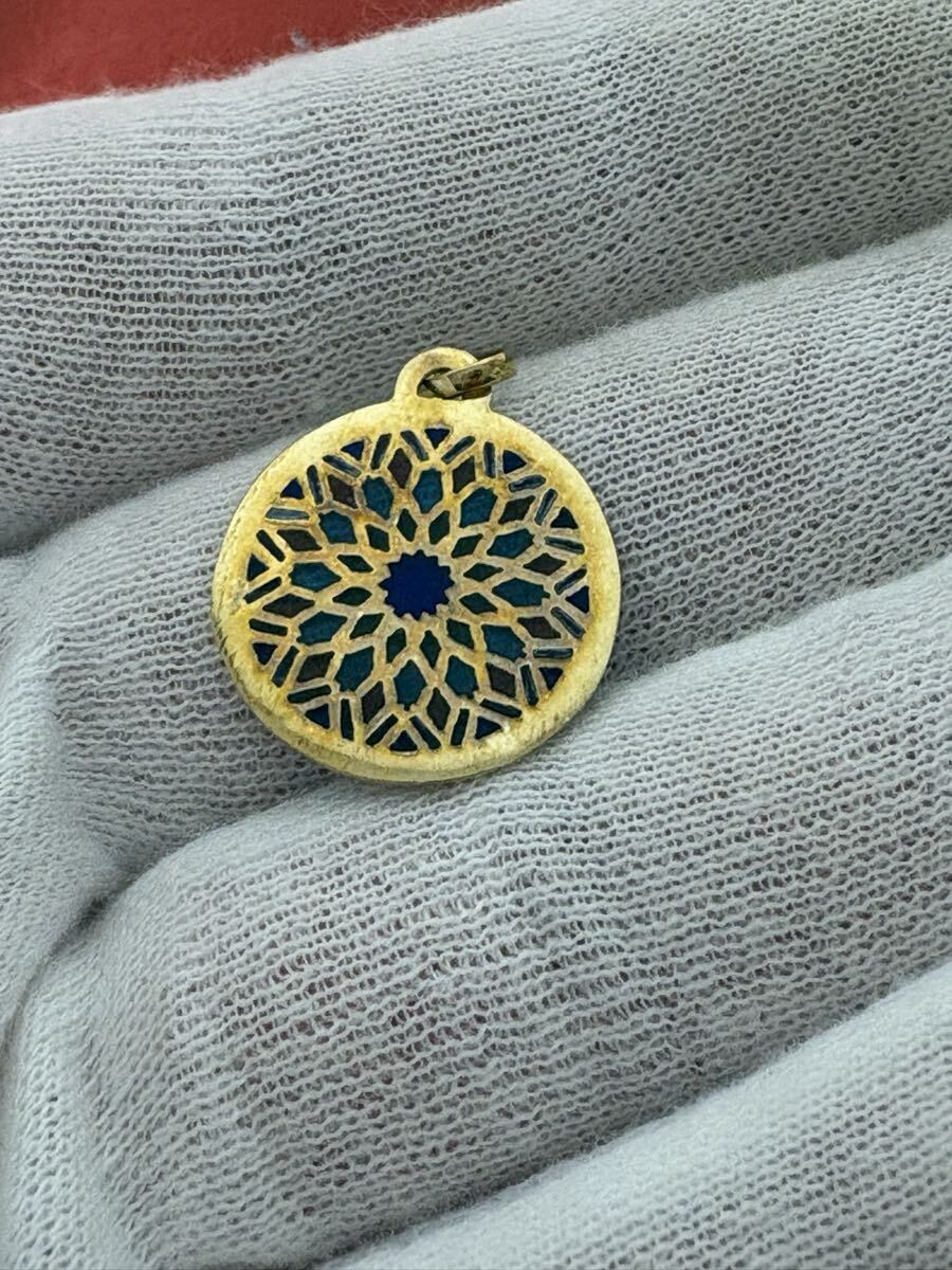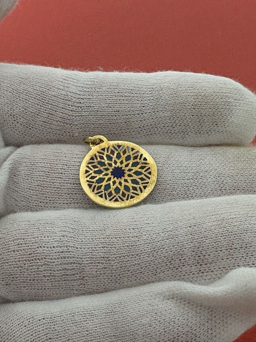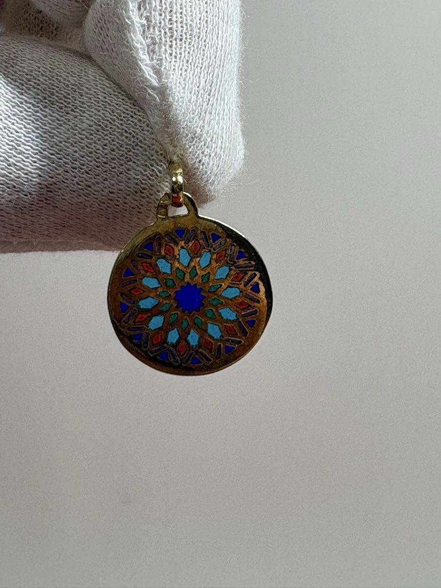 K18 金 ゴールド 刻印750 ノートルダム大聖堂 エマイユ ステンドグラス ペンダントトップ 2.3グラム アクセサリー 中古 保管品