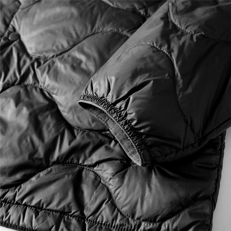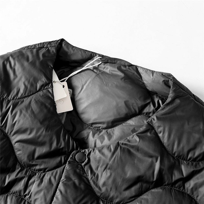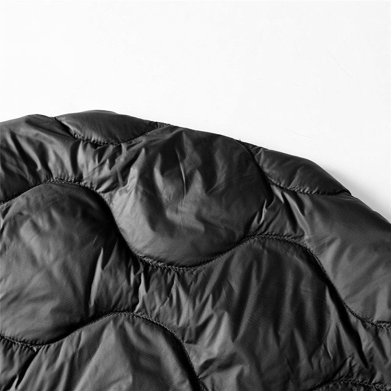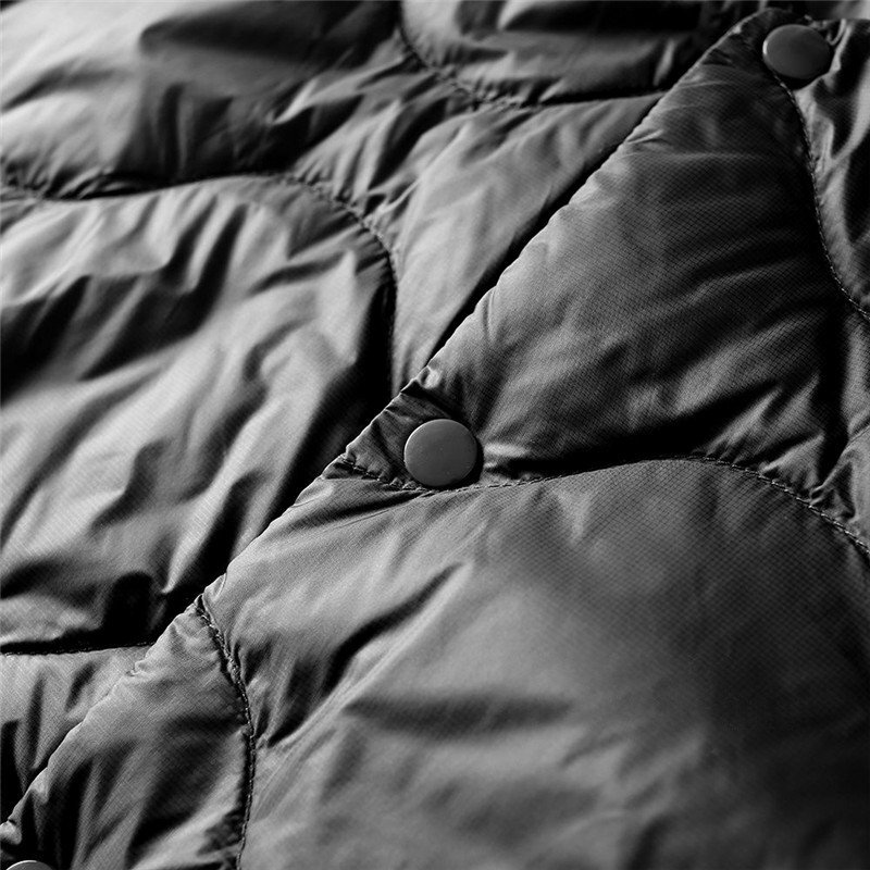 軽量で暖かく、持ち運びにも便利なノーカラーダウンジャケット