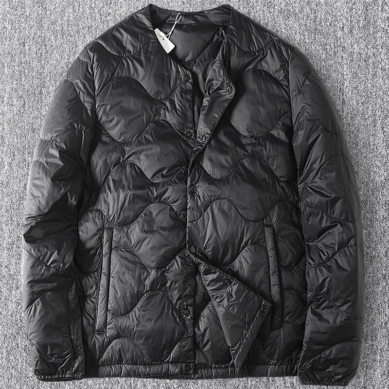 新品 ダウンジャケット キルティング 軽量 85%ダウン ノーカラー 防風 撥水 厚手 秋冬 保温 メンズ ダウンアウター 黒 E9115-3XL