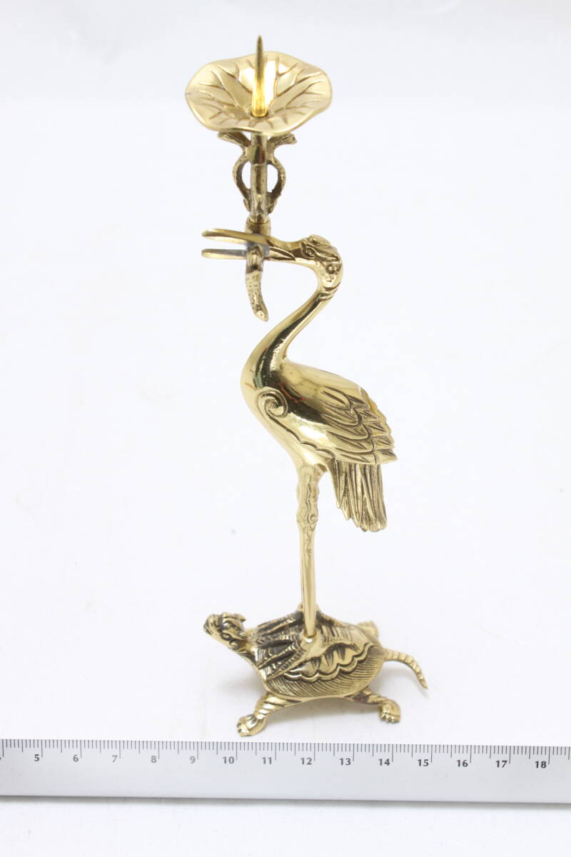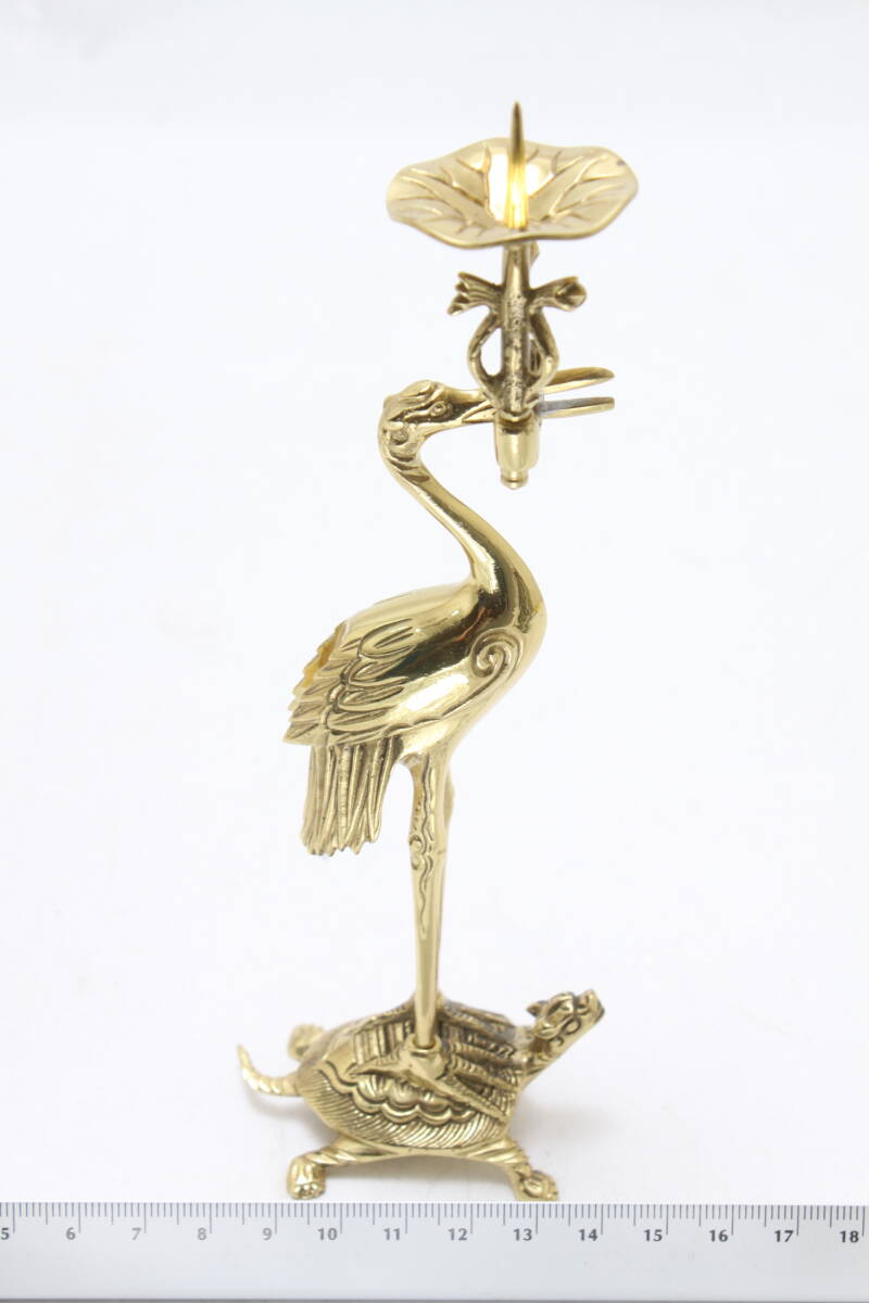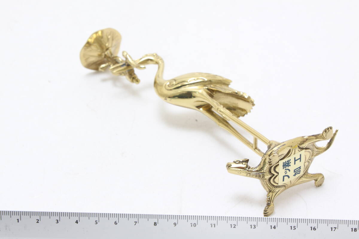 3860 美品 清掃済 小振り 燭台 鶴亀燭台 フッ素加工 金属製 高さ19cm 6寸 230g 真宗大谷派(東本願寺)荘厳 仏壇 仏具 寺院 仏教