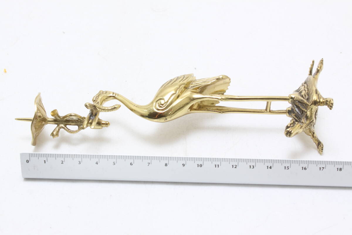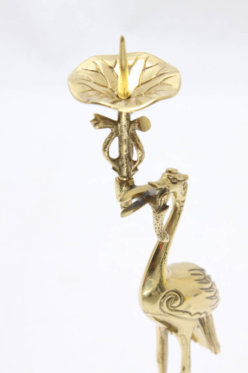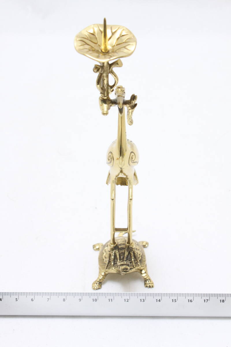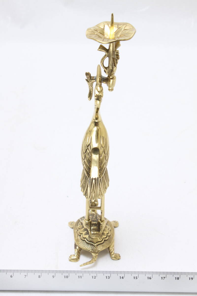 3860 美品 清掃済 小振り 燭台 鶴亀燭台 フッ素加工 金属製 高さ19cm 6寸 230g 真宗大谷派(東本願寺)荘厳 仏壇 仏具 寺院 仏教