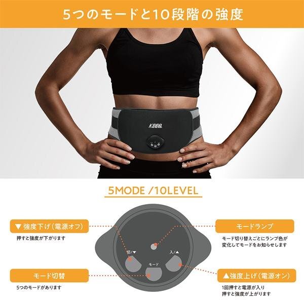 EMS 腹筋ベルト 腹筋パッド 10段階強度 5種類モード お腹 ウエスト 背中 腰回り 筋肉 送料無料- 60N◇ EMSベルトプラス