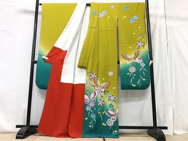 | 身丈 165cm(肩から) 裄丈 68cm 袖丈 111cm 縫込み 5cm 袖幅 34cm 前幅 25cm 後幅 30.5cm 着物縫いこみ 内揚げ 4cm 裄 お袖側 約2cm 身頃側 約1.5cm 《 サイズについてはこちら 》 |