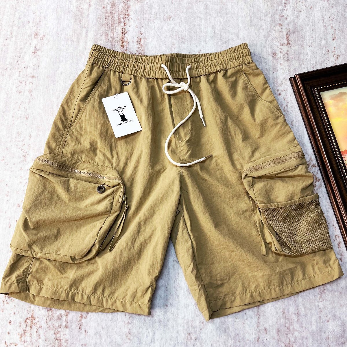 一枚限定 ショートパンツ ロンドン製造 ソフト 通気 薄手 ゆったり シンプル カーゴパンツ ハーフパンツ 短パン ボトムス 夏服 SIZE:L