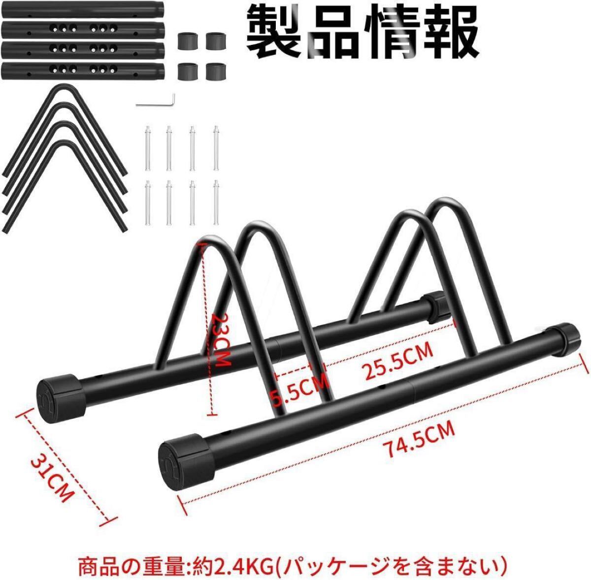 【梱包内容】自転車スタンド×2、アンカーボルト×8【サイズ】幅74.5cm 奥行31cm 高さ23cm 車輪幅5.5cm( こども 幼児車や原付/その他一部のタイヤに合わない場合がありますのでご了承ください。)従来の一段式サイクルラックとは異なり、2台の自転車を同時に収納できる。、便利性が一気にアップします。