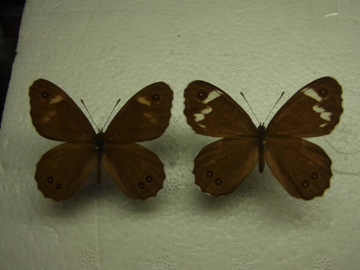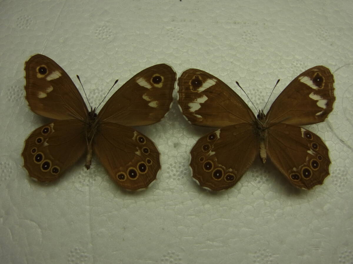 ツマジロウラジャノメPA ♂♀岐阜県上宝町♂1999年7月採集♀1998年11月飼育羽化