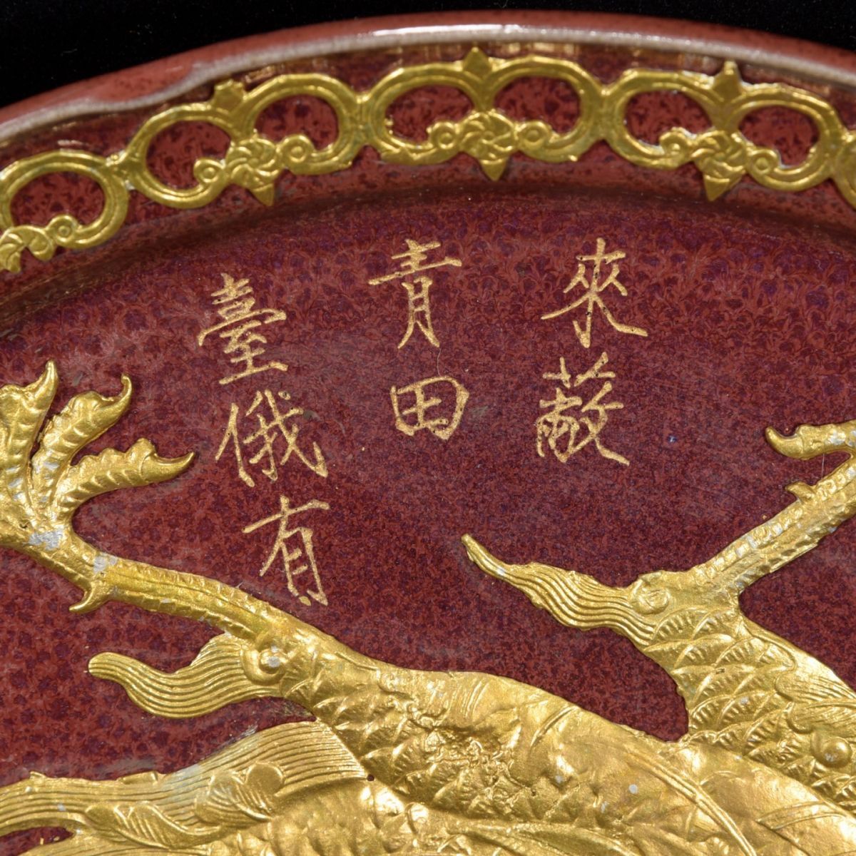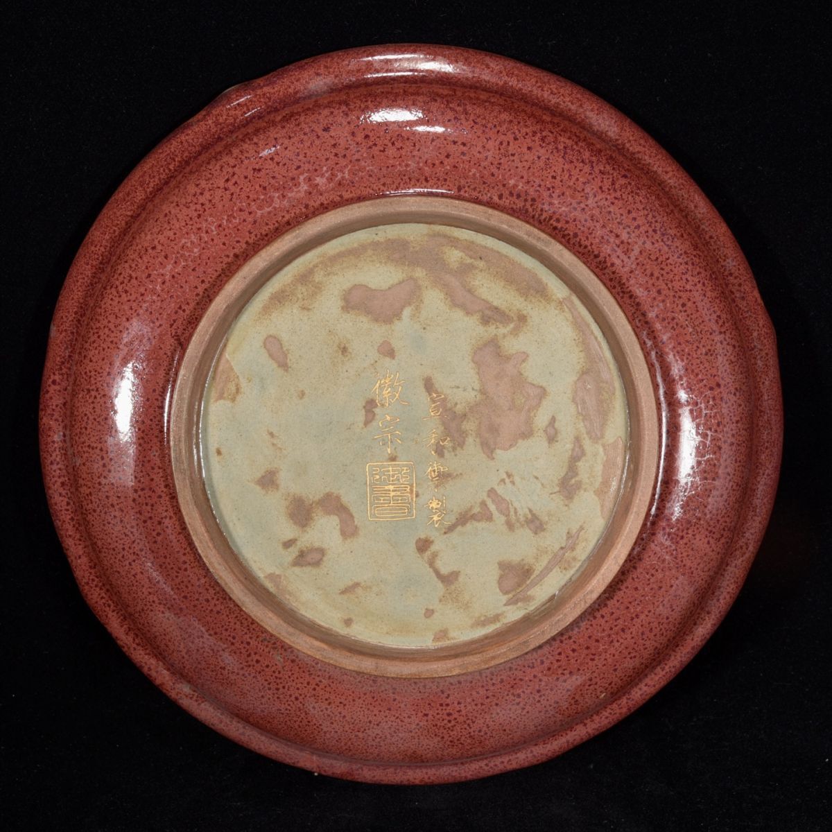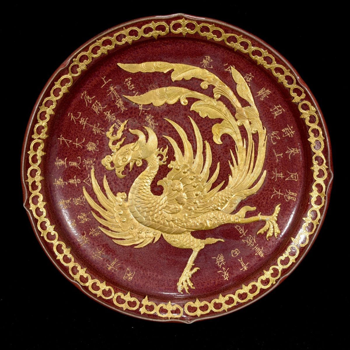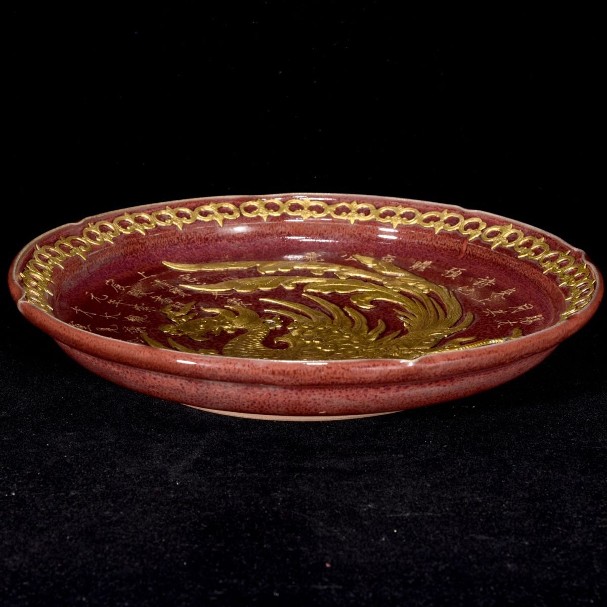 永し 宋時代 鈞窯 宣和御製 塗金刻詩 鳳紋盤 古陶磁器 陶芸 皿 中国陶瓷器 唐瓷 置物擺件 古美術品 収集 旧家蔵出 中国唐物
