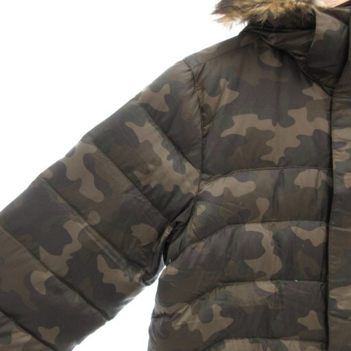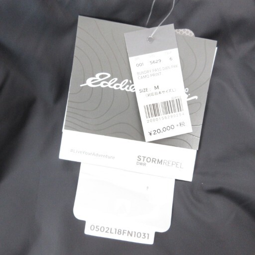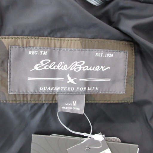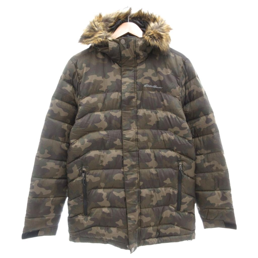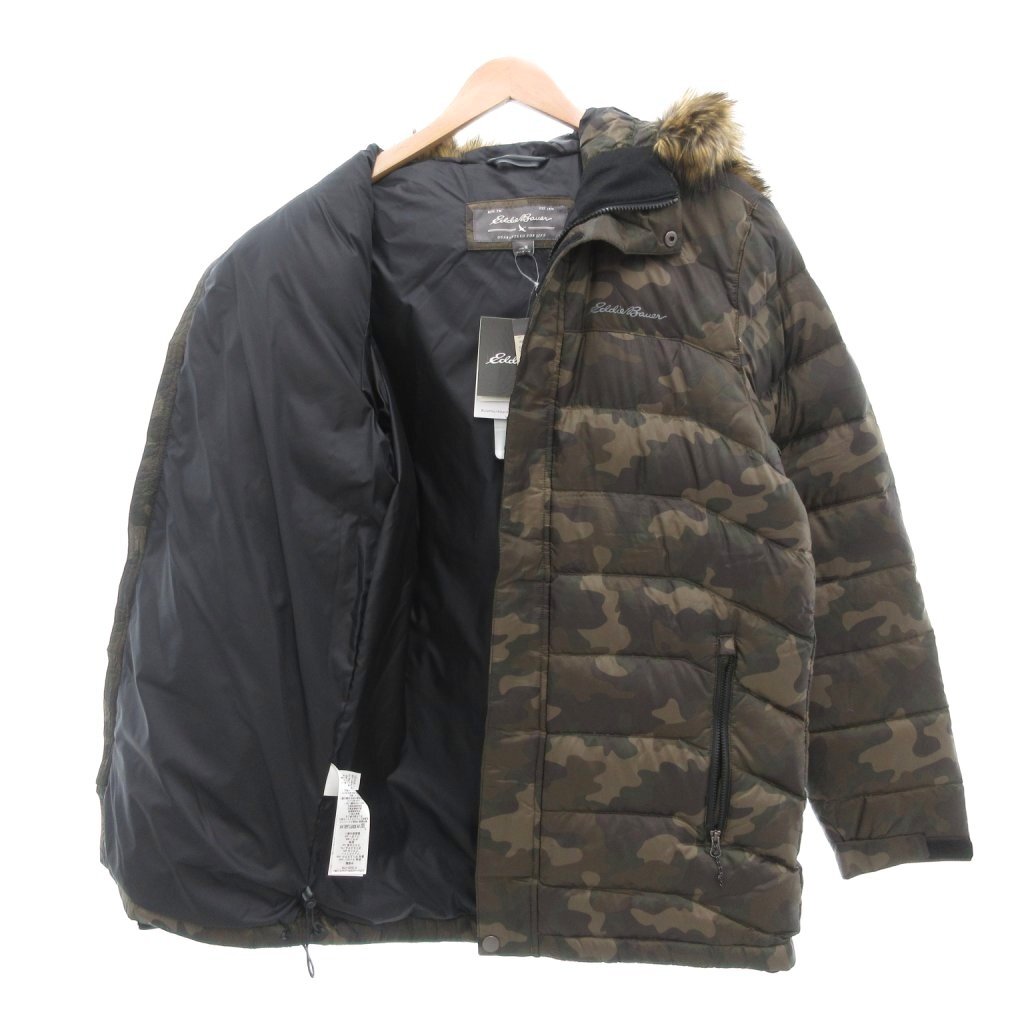 未使用品 エディーバウアー EDDIE BAUER タグ付き ダウンコート ジャケット M ミドル ハーフ丈 フード 迷彩柄 カモフラ カーキ