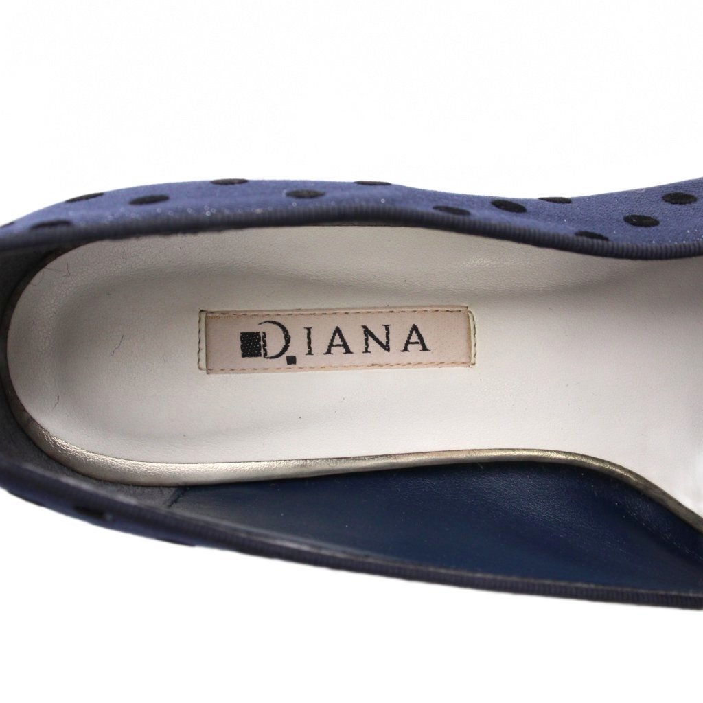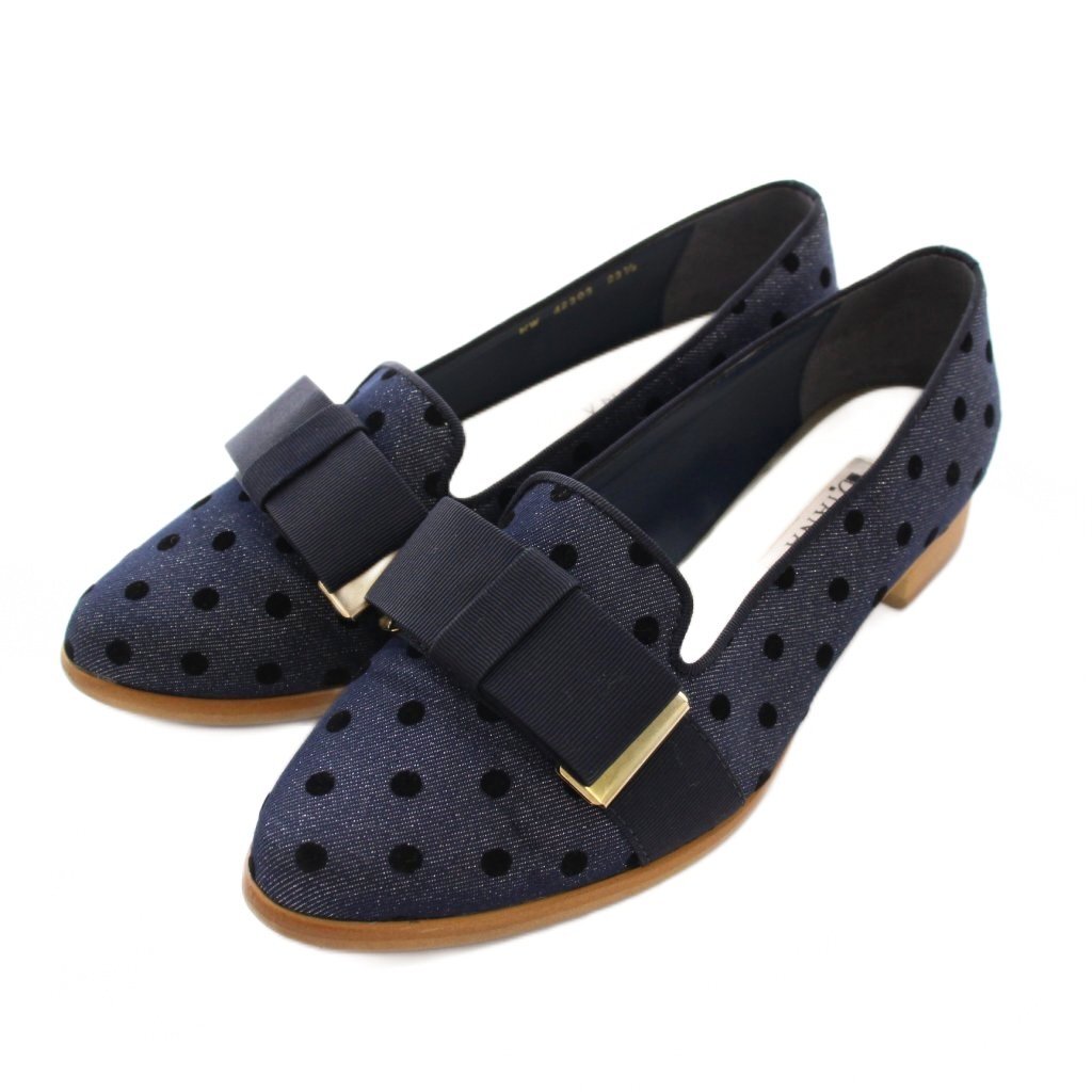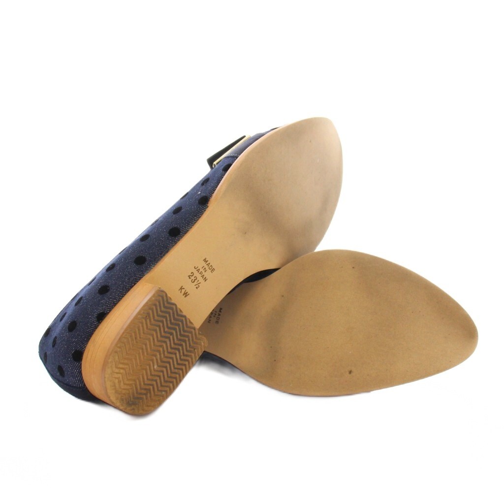 ダイアナ DIANA パンプス デニム生地 リボン付き ドット柄 フラットシューズ 23.5cm 紺 ネイビー /YM レディース
