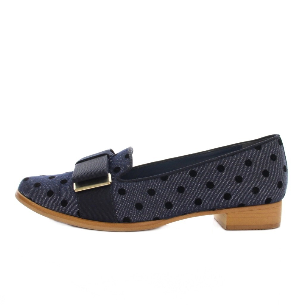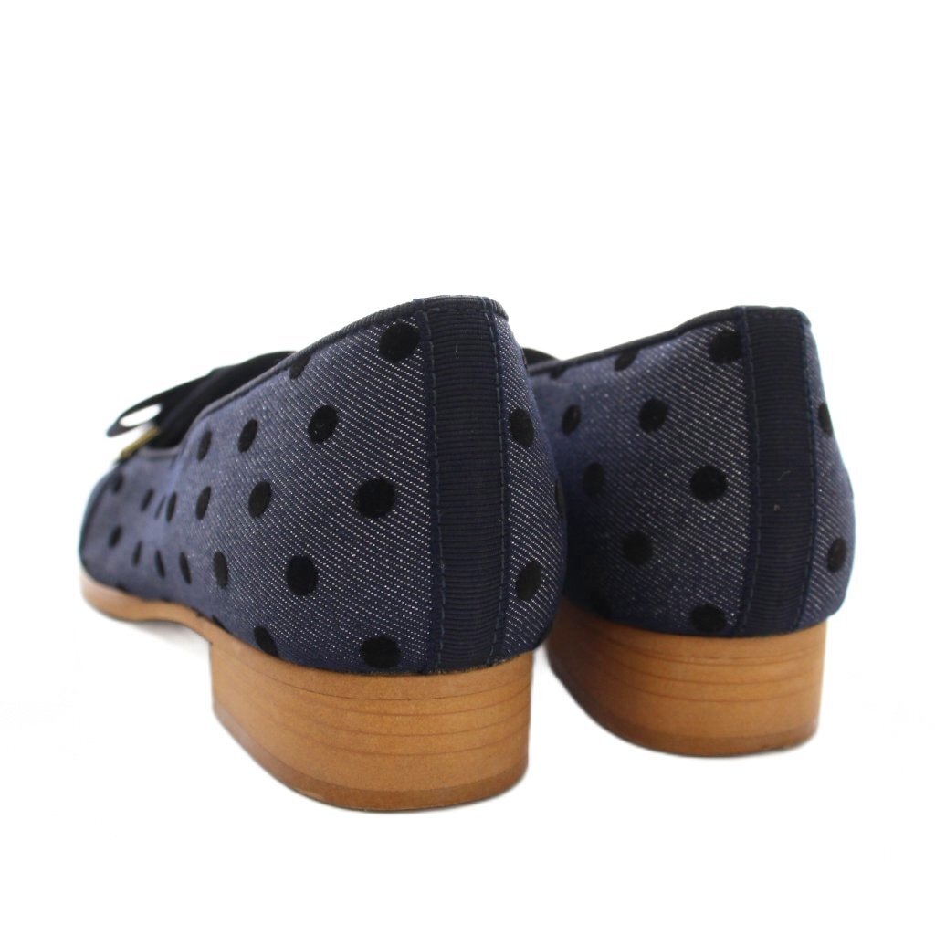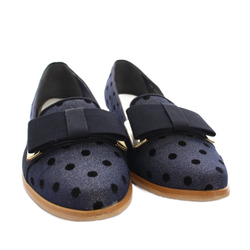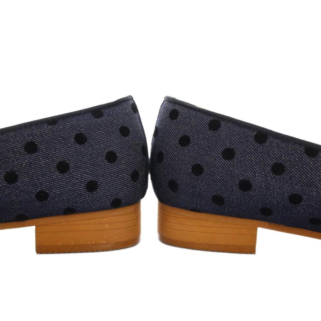 ダイアナ DIANA パンプス デニム生地 リボン付き ドット柄 フラットシューズ 23.5cm 紺 ネイビー /YM レディース