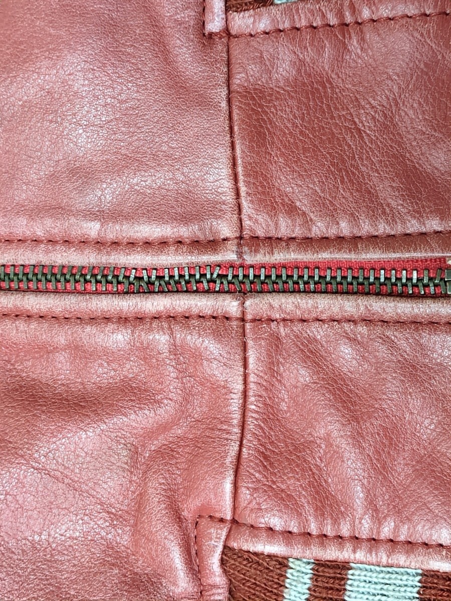 | タグにLADY'S WEARの記載ありますがメンズの方も問題無いサイズ感です。 色はレンガ色系 汚れあり。皮部に擦れあり。 ファスナー下部のエレメントの噛み合わせが悪くずれています。今のところ開閉は可能です。 |
