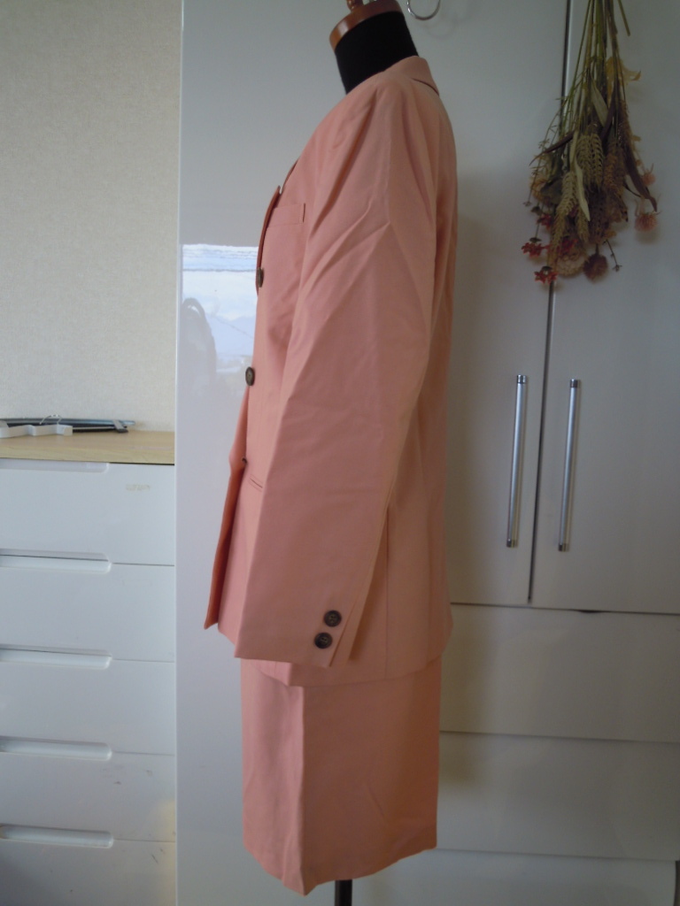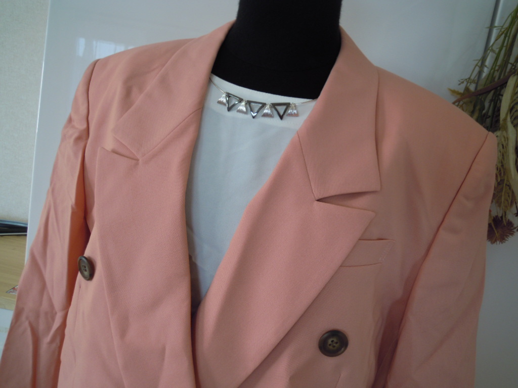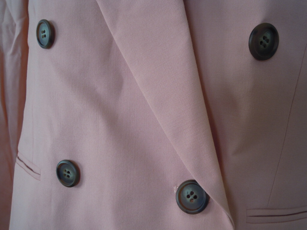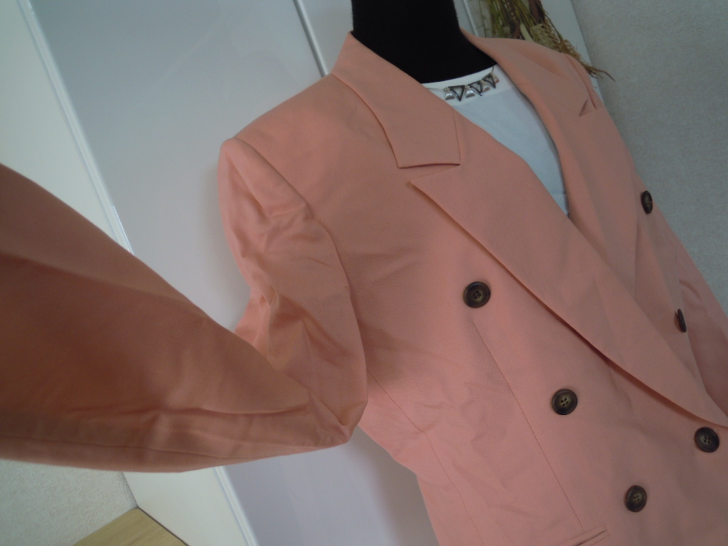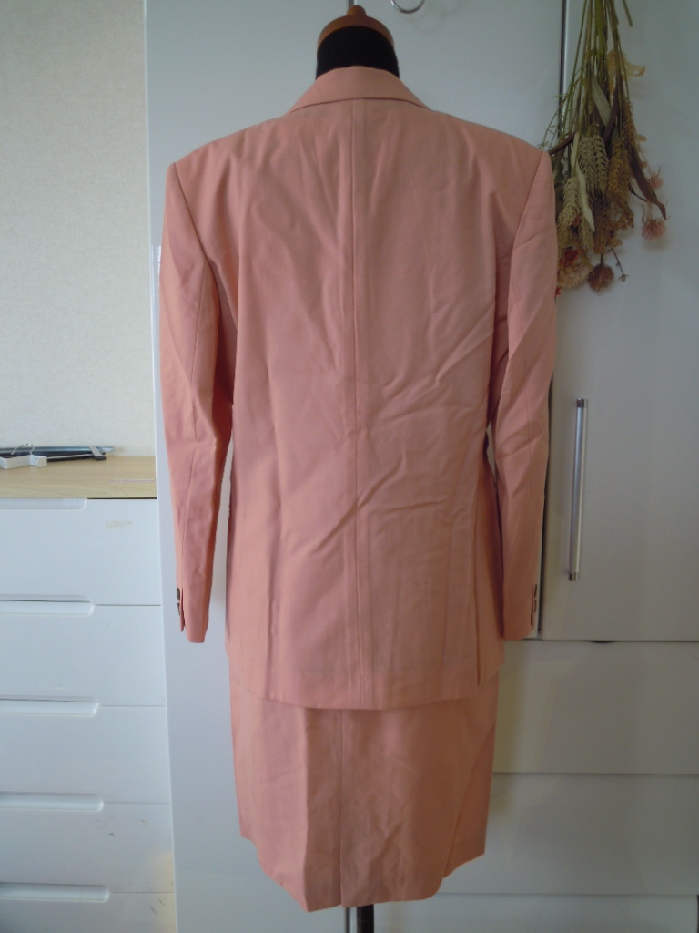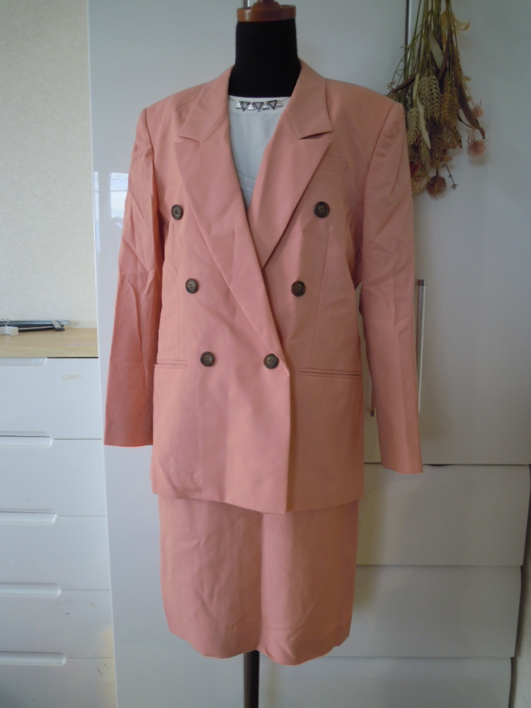 ピンクのダブルブレストスーツ、サイズB88 W69 H94 T156。