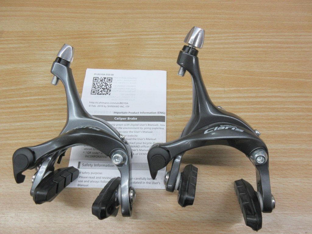 2025モデルの新車から取り外したブレーキです。 ロード用ブレーキキャリパーの前後セット アーチサイズ:51mm 対応タイヤ幅(最大) 28mm 取付ナットは前後1個づつ付属します。ご使用のフレームによっては別の長さのものに交換が必要かもしれません。 保管中の多少の汚れ、小傷等があるかもしれません。 細部まで気にされる方はご遠慮ください。 | ||||