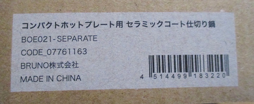 新品 未開封 BRUNO コンパクトホットプレート用 グリルプレート BOE021-GRILL セラミックコート仕切り鍋 BOE021-SEPAPATE