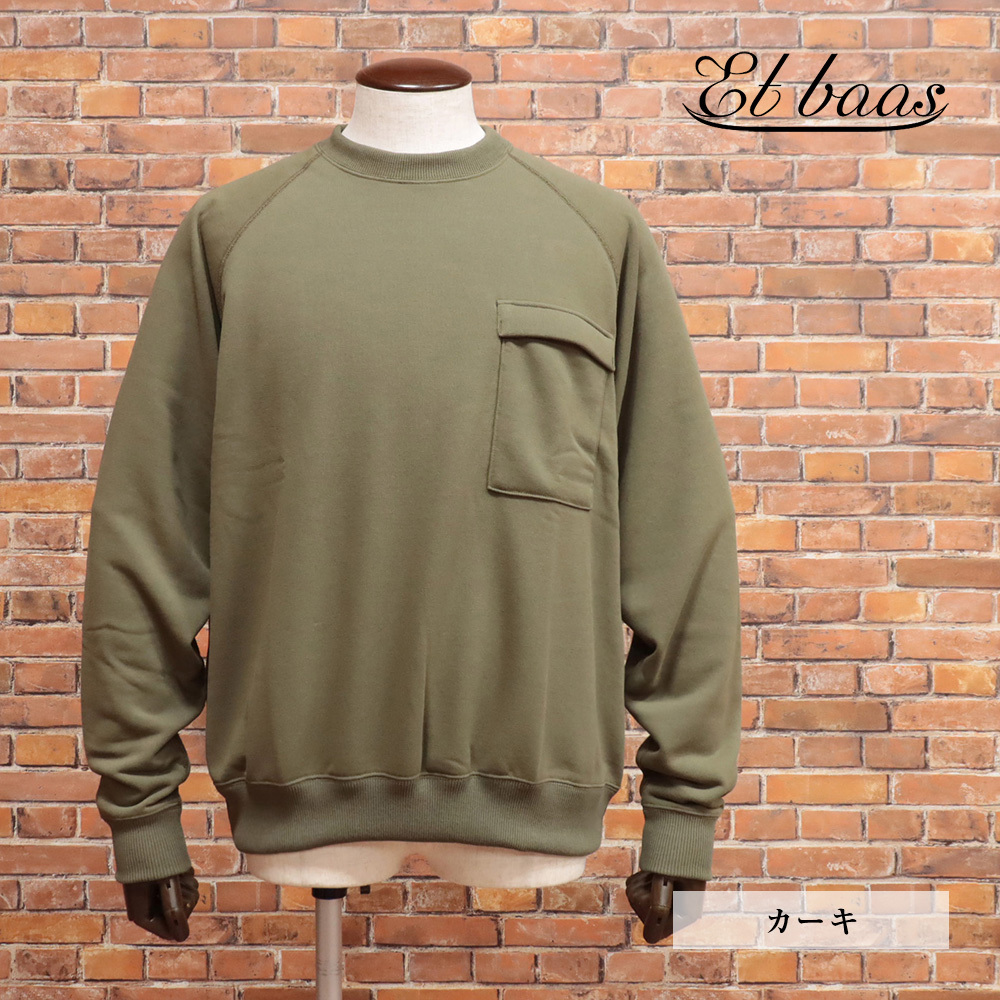 1円/Et baas/Mサイズ/日本製 クルーネック スウェット プルオーバー トレーナー 無地 エバース 新品/カーキ/jk559/
