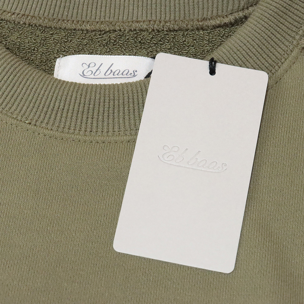 ゆったりめのシルエットで仕上げた絶妙なサイズバランスが魅力のクルーネックプルオーバー。程よい厚みでとても柔らかな風合いの裏毛スウェット素材を使用しています。イージーケアで着用後もシワにもなりにくく、伸びやダレも少なく、毛玉の発生も防ぎます。ポケットの内側と左裾リブの裏側にEt baasロゴモノグラムのメガネ拭き生地をあしらい、メガネやスマートフォンの汚れをサッと落とせるユニークなデザインとなっています。