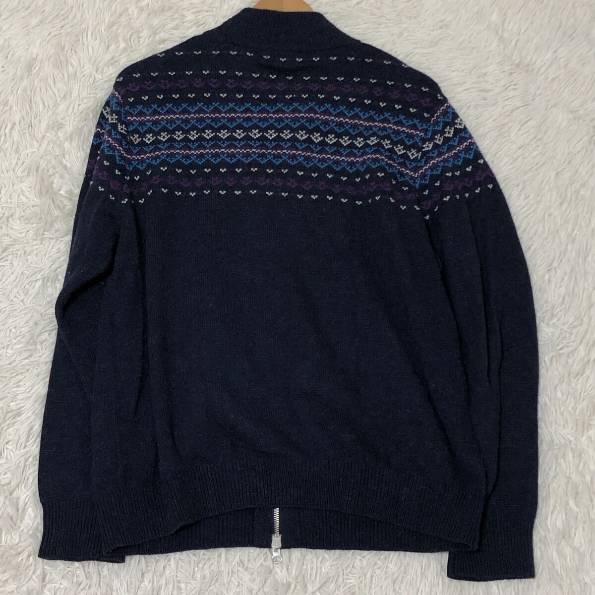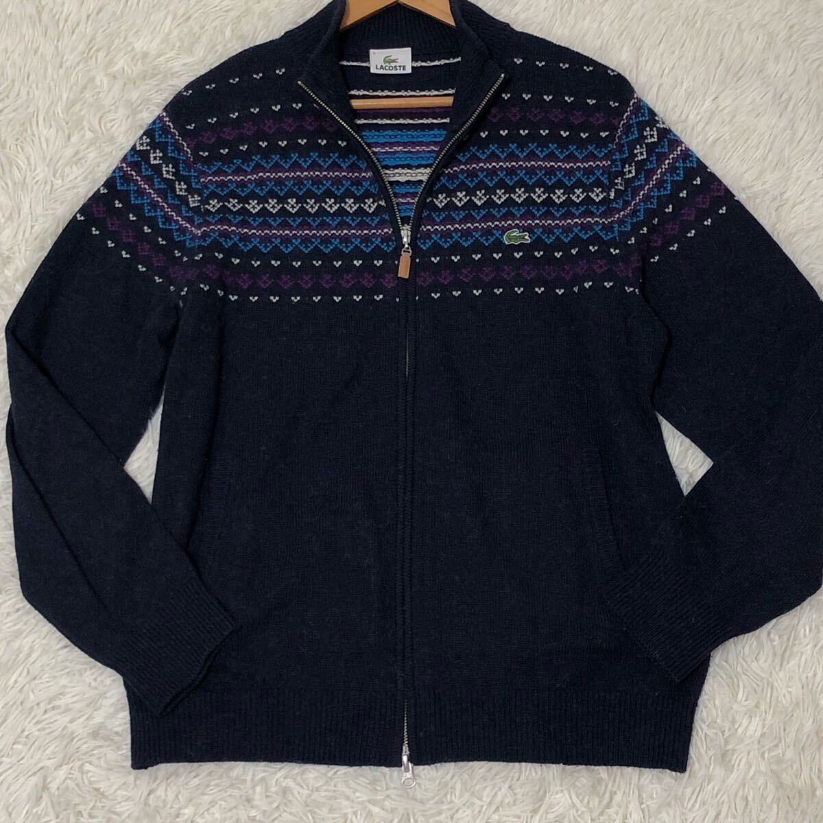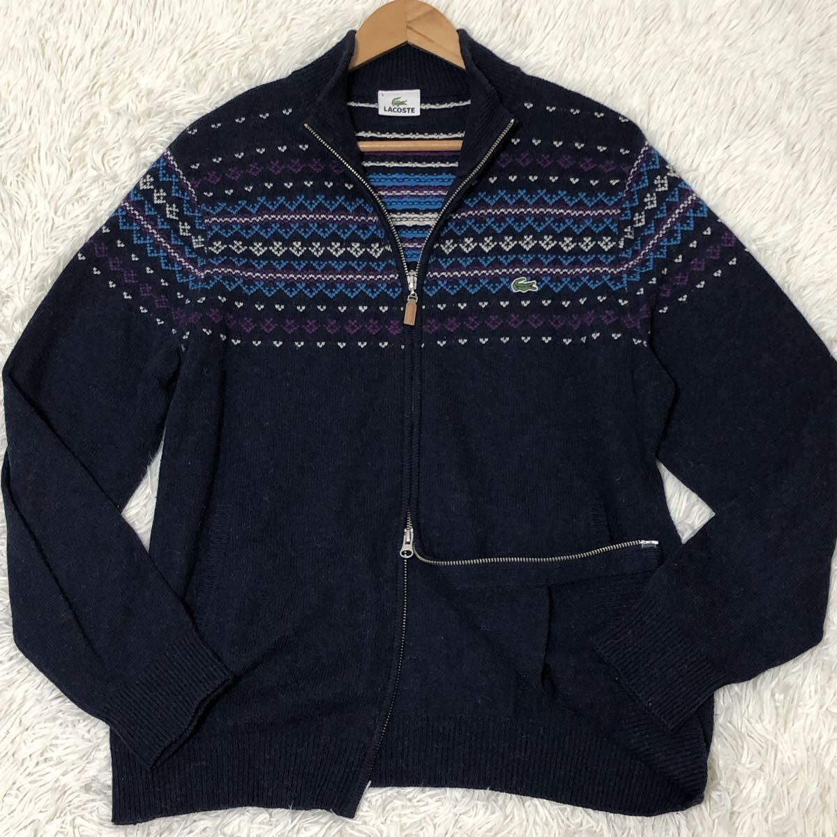 美品◎XL/5サイズ◎LACOSTE ラコステ ダブルジップ ドライバーズニット ニットブルゾン アーガイル ネイビー 紺色 ワニ刺繍 ベビーアルパカ