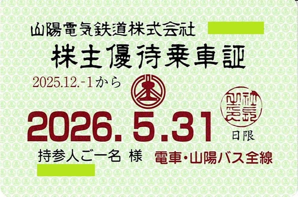 山陽電鉄 株主優待乗車証 【定期タイプ 電車・バス全線】