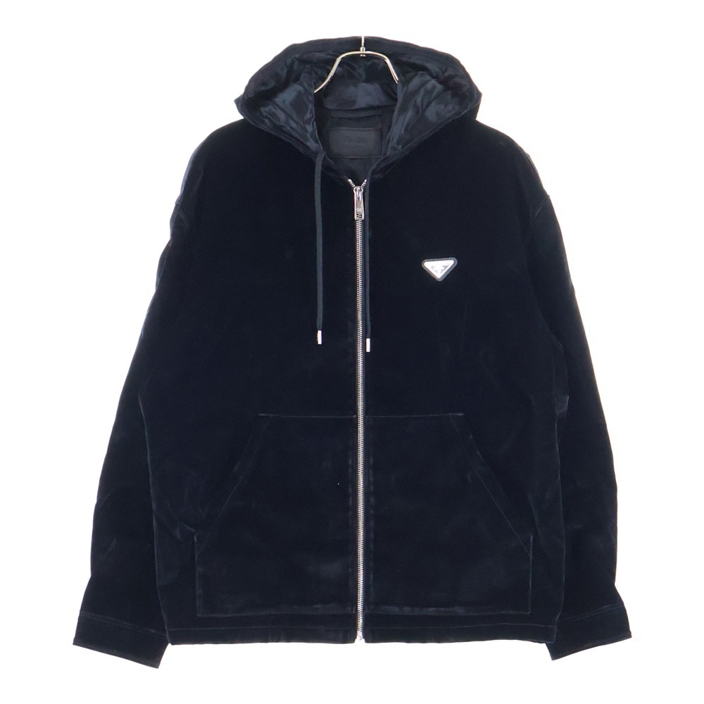 PRADA プラダ 三角プレート コットンベルベット ブルゾンジャケット ジップアップ フーディー ネイビー SGC198