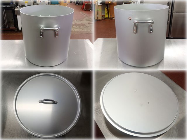 平和アルミ製作所 アルミ半寸胴鍋 45cm を出品いたします。 ■特徴■ 1918年設立の 平和アルミ製作所(現・鋳物屋)の アルミ製半寸胴鍋です。 アルミは熱伝導率が高く、 保温性にも優れています。 容量はおよそ70Lです。 未使用品です。 写真に写っている周りのものは付属しません。 発送は佐川飛脚ラージサイズ宅配便でお送りします。 送料軽減のため弊社まで 直接引取りに来て頂ける方も歓迎です。 近似品の定価は49,000円前後の非常に高価な商品です。 未使用品を格安出品いたしますのでこの機会をお見逃しなく! |