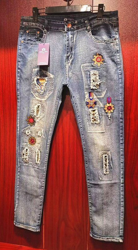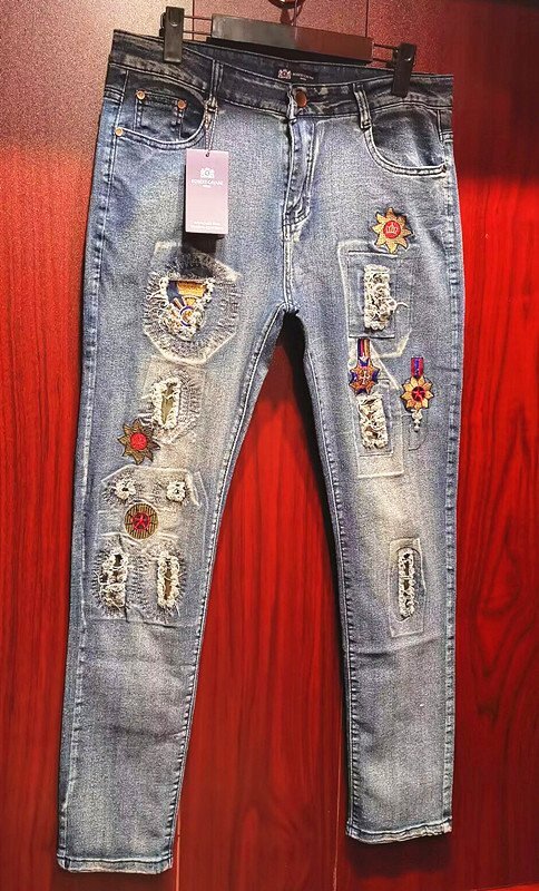 最高級*定価11万◆イタリア*ローマ発*ROBERT CAVANI/ロベルトカバーニ・ダメージ加工・豪華刺繍※デニムパンツ・ジーンズ48/L