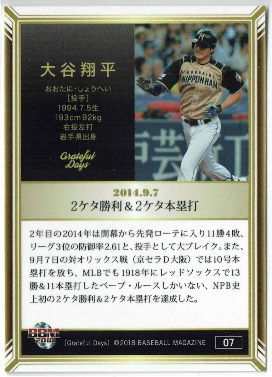 大谷翔平 2018 BBM Grateful Days 07 2014.9.7 2ケタ勝利&2ケタ本塁打 Double Double 神戸芸術工科大学