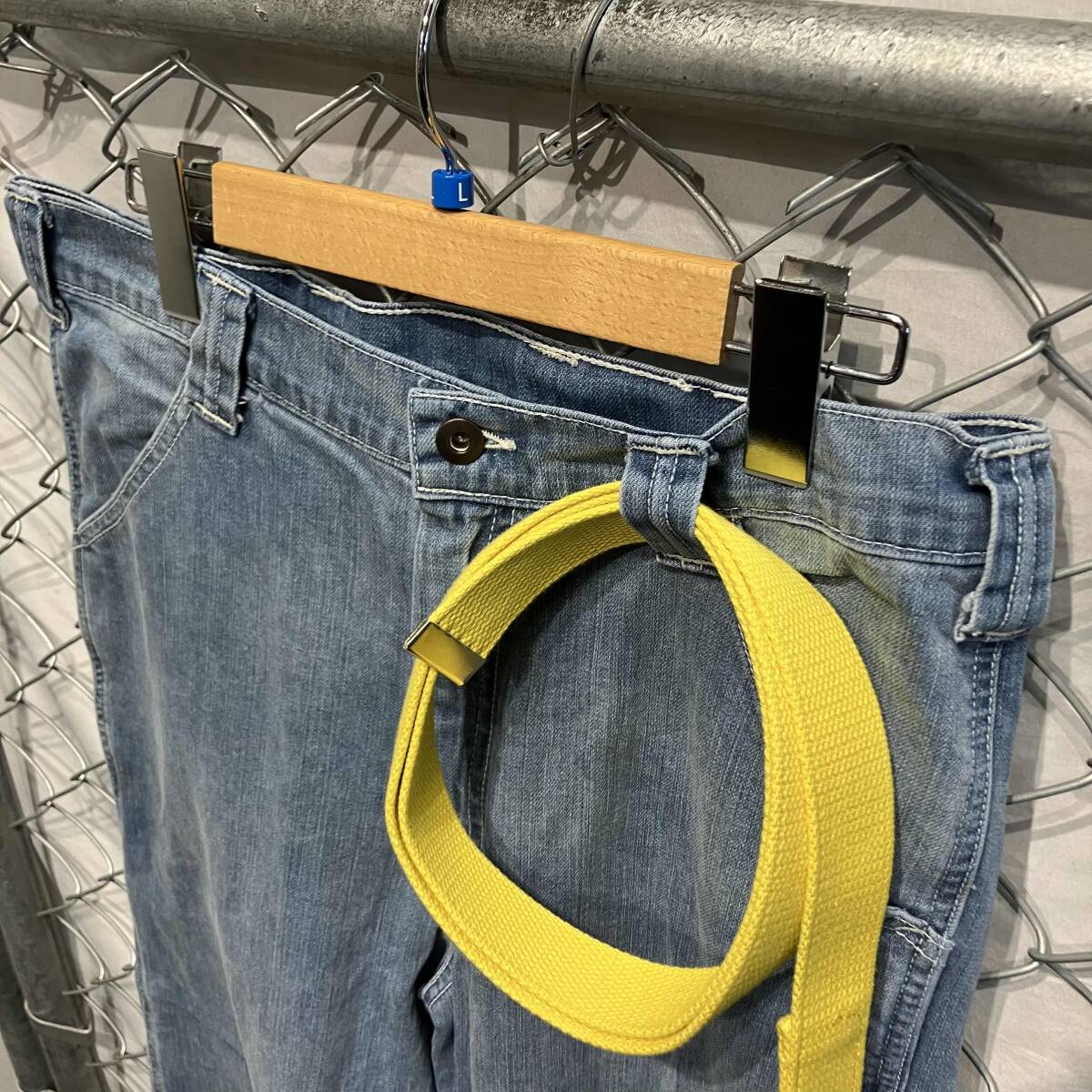 | 【サイズ】 ウエスト 約84㎝ 股上 約33㎝ 股下 約71㎝ 裾幅 約21㎝ 【カラー】 ライトブルー 【状態】 一般的な中古品の状態 |
